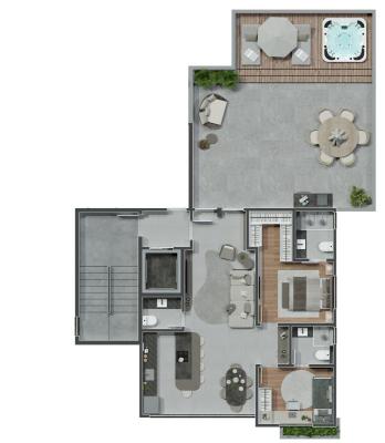 Cobertura LINEAR sendo; 1° piso; 02 quartos e duas suítes, 01 lavabo. Sala ampla para dois ambientes, ampla área externa02 vagas de garagem em linha, cobertas e demarcadas.