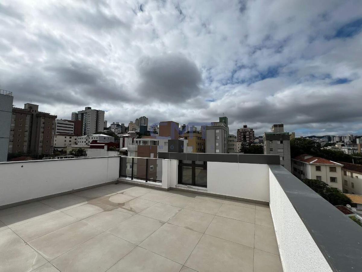 Cobertura ponto nobre do Santo Antonio, com 143m²;, Rua plana, tranquila, próximo ao comercio e facil acesso para entrar e sair do bairro1º PISOSala ampla para 2 ambientes, com Janelão, Lavabo, Cozinha americana com bancada granito preto, Gás canalizado, área Serviço, Escada para segundo piso com corrimão em aluminio.2 espaçosas Suites com piso em Laminado, banheiros com bancada granito e porcelanato;2º PISOSala espaçosa com piso em Porcelanato, lavado com Acabamento no teto em pergolado vazado com teto de vidro, Varanda co acabamento em pergolado de concreto com vista definitivaEspaçosa Sala com piso em Laminado que pode seer um terceiro quartoárea Externa com 44 m²;3 vagas de garagem 2 livres e presa