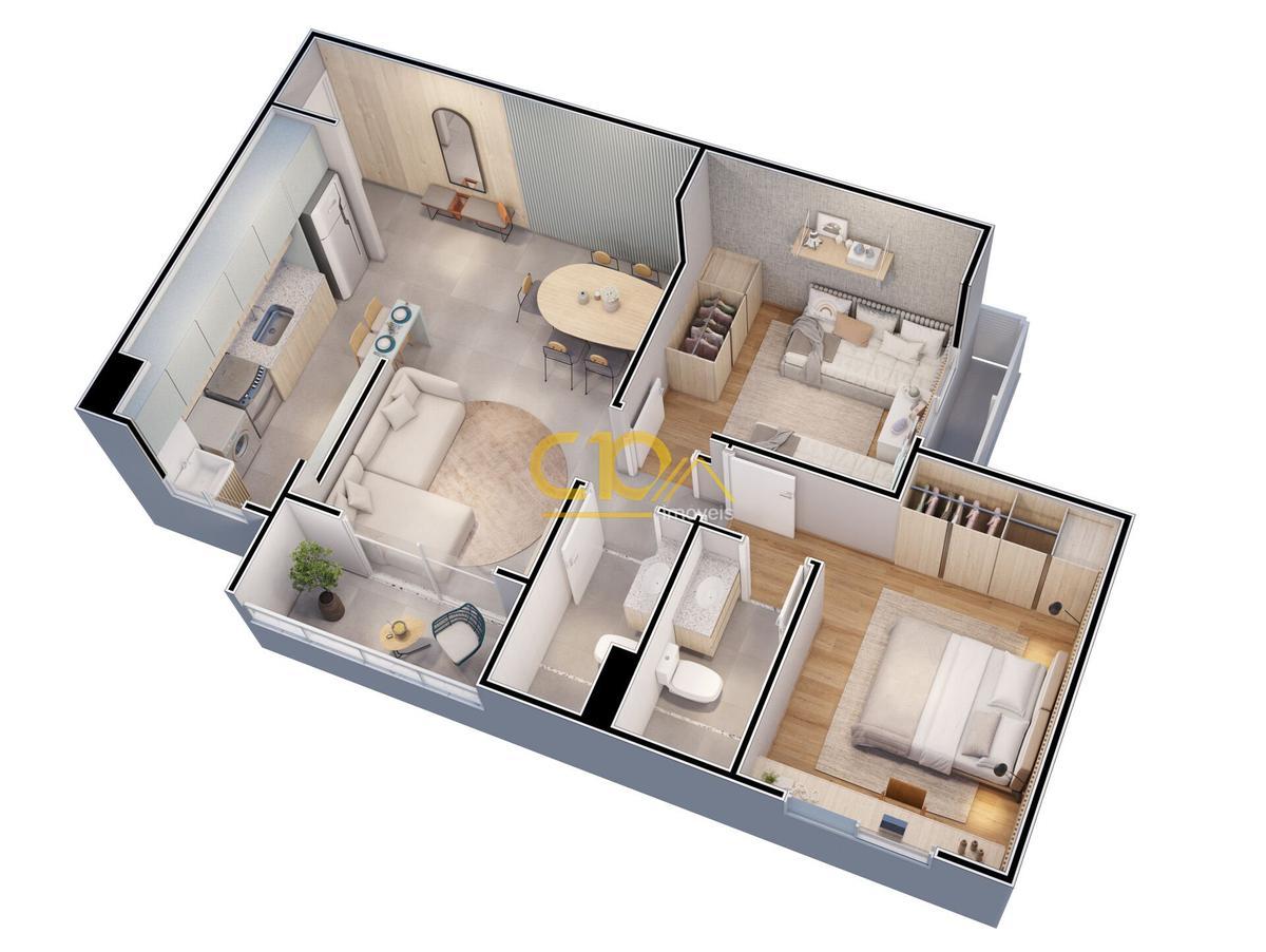 APARTAMENTO/CARACTERÍSTICAS: Ampla sala para dois ambientes; varanda; circulação; dois quartos, sendo uma suíte; banho social; cozinha estilo americana; área de serviço conjugada.