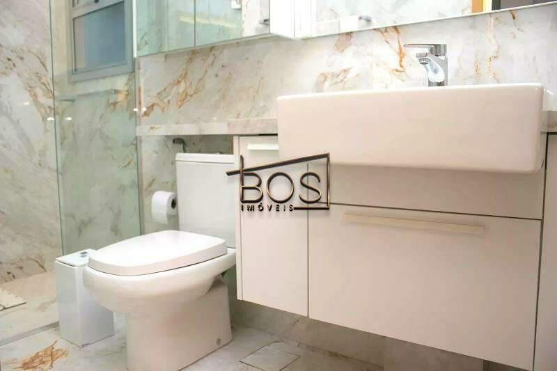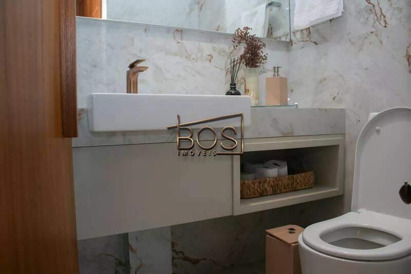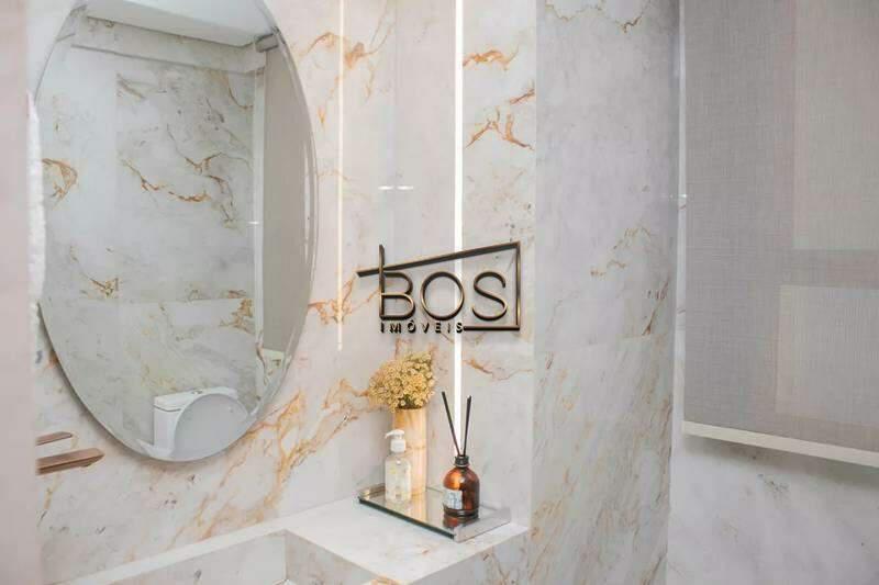 - Lavabo com espelho, bancada e piso em porcelanato italiano