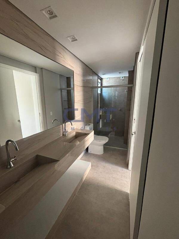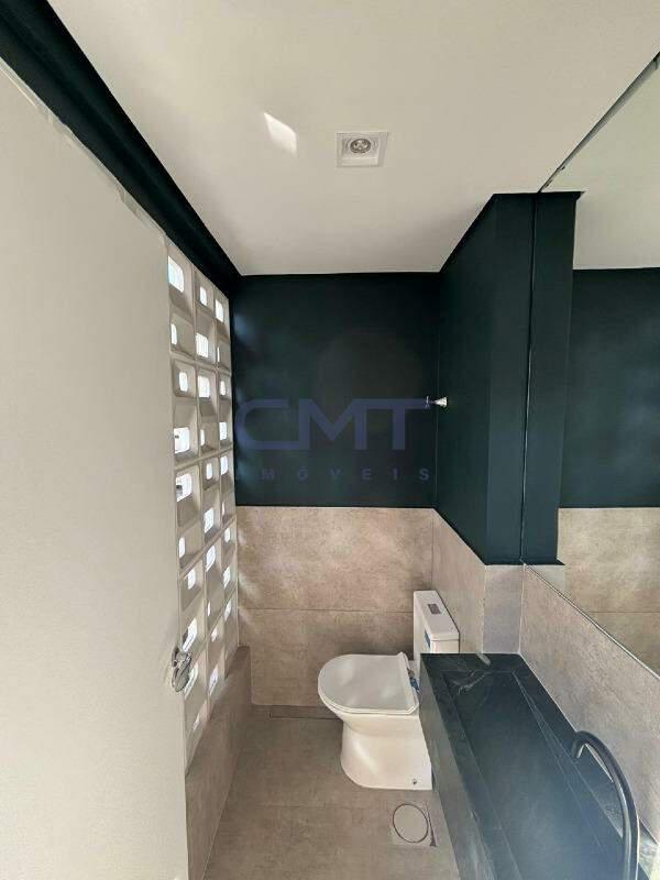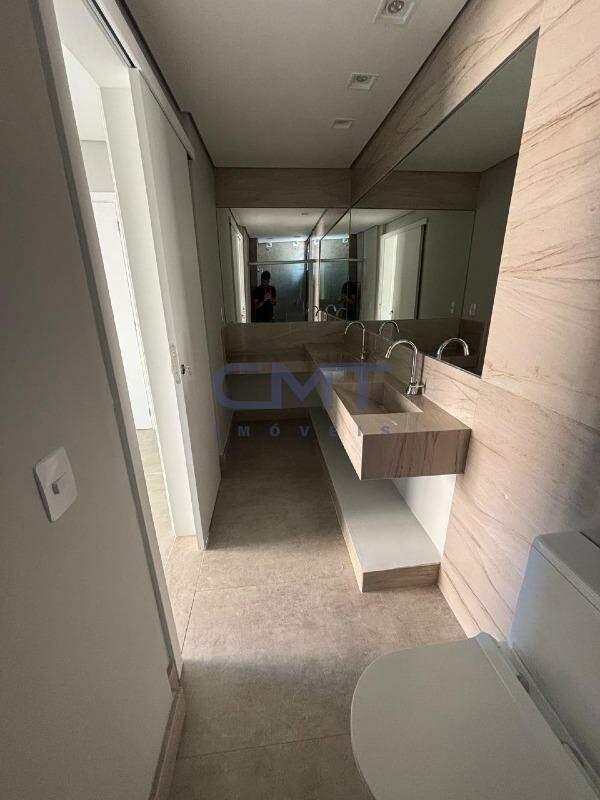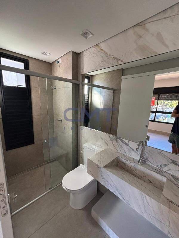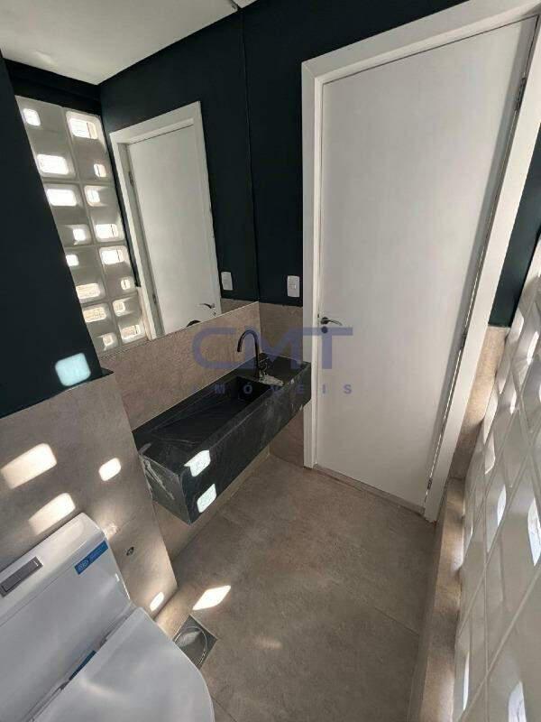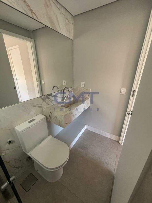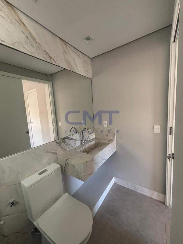 Dois dormitórios, ambos suítes, totalizando três banheiros (incluindo lavabo).