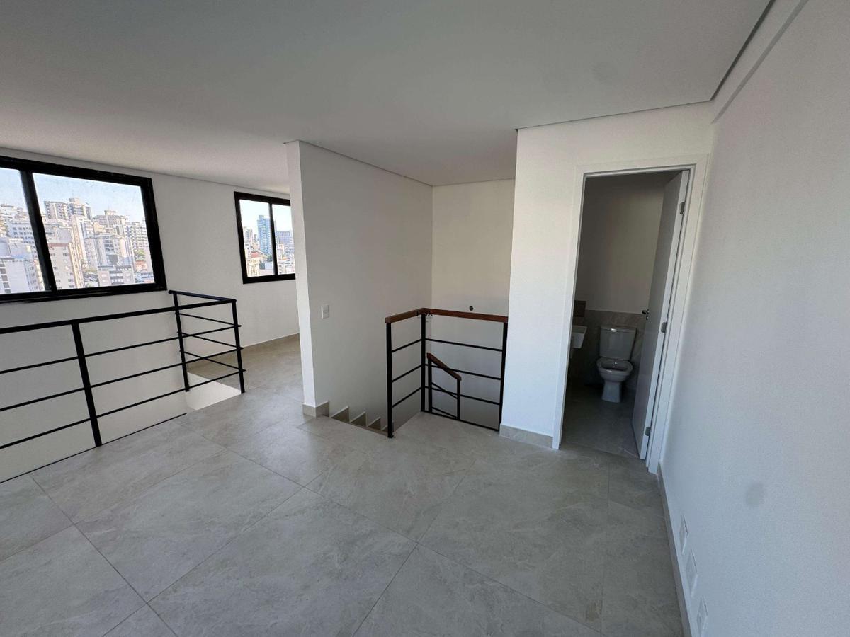 Pronto pra morar cobertura de 2 quartos no bairro serra excelente localização, próximo à área hospitalar, minas tênis clube, tjmg, supermercados, escolas e faculdades. acesso rápido às avenidas do contorno, afonso pena e bandeirantes. em fachada contemporânea valorizando o design moderno, o empreendimento foi projetado para proporcionar maior conforto, segurança e bem-estarua o prédio conta com: circuito cftv, portaria virtual, fechadura digital, fechadura biométrica, espaço gourmet, salão de festas. medidor individualizado de água. 1o pavenidaimento: sala para 2 ambientes em porcelanato, 2 quartos, 2 suítes com piso em laminado, com janelas com venezianas integradas, banhos em porcelanato nos pisos e paredes e bancadas em granito, cozinha americana em porcelanato, bancada em granito. 2o pavenidaimento: ampla sala, lavenidaabo e terraço com vista panorâmica. 121 m² - 2 vagas de garagem