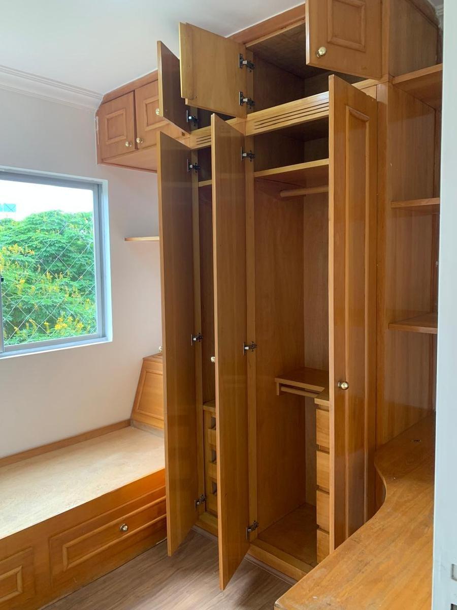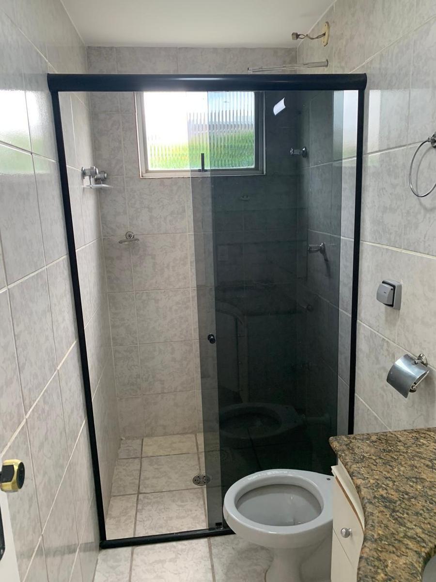 2 BANHOS com armários, espelho e box em vidro fumê.