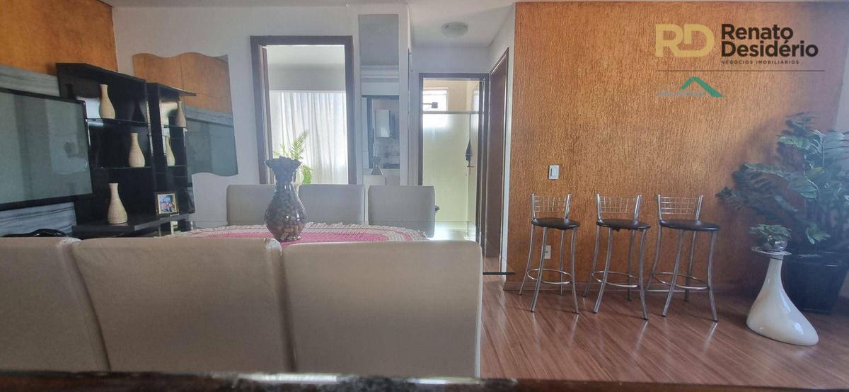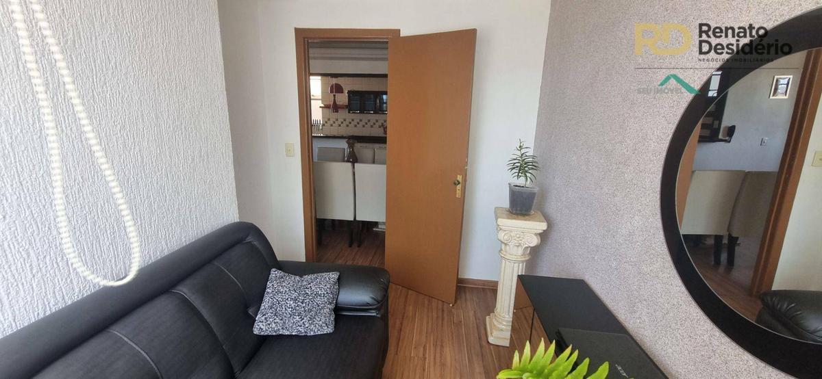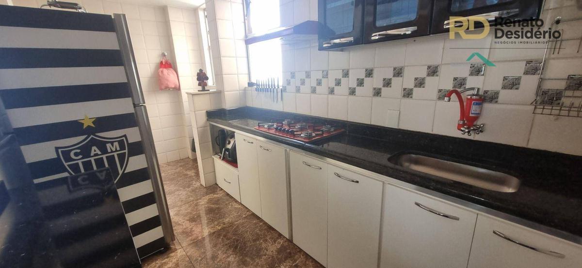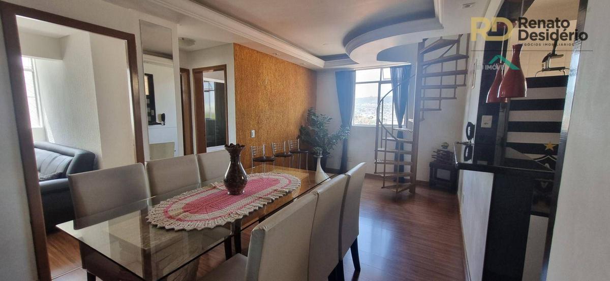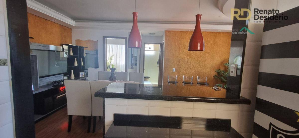 Cobertura possui 2 quartos no primeiro pavimento, 1 suite no segundo pavimento com armários embutidos, 2 banhos com box, cozinha com armários e piso em porcelanato e armários embutidos, bancada e balcão em granito.