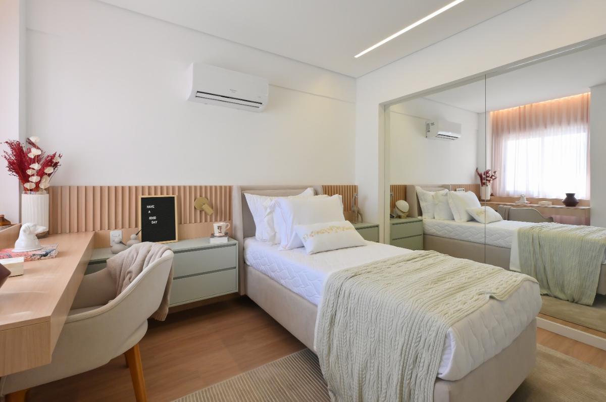 Pédio com guarita com vidro externo blindado, hall de entrada decorado, 02 elevadores com controle de acesso, wi-fi nas áreas comuns, pontos de CFTV, áreas comuns entregues equipadas e decoradas, salão de festas, lazer completíssimo com quadra de Beach Tennis, piscina adulto climatizada, piscina infantil climatizada, playground, vaga para carregamento de carros elétricos.