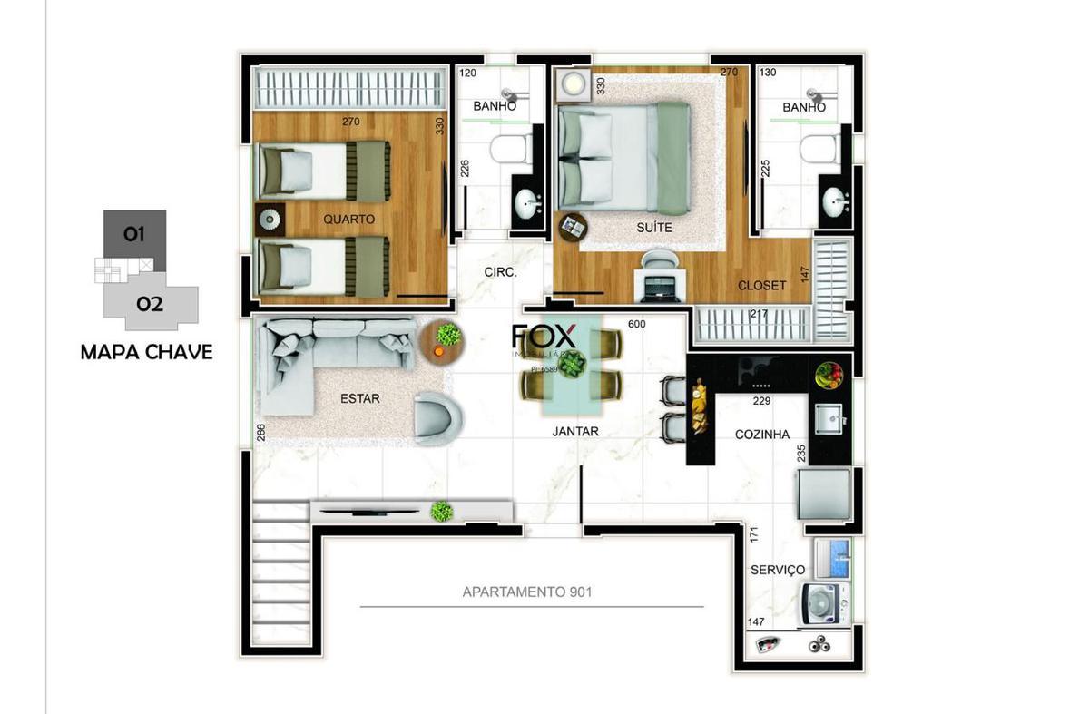 Apartamentos tipo de 2 e 3 quartos, com 61 m² e 83 m² respectivamente. 02 quartos com 1 suíte com closet e 3 quartos com 1 suíte com closet, 2 semi-suítes e lavenidaabo. o empreendimento também possui: lojas, áreas privativas e coberturas. acabamento diferenciado, prédio com fachada aerada em porcelanato, estrutura em concreto armado. medição individualizada, janelas com venezianas integrada, teto rebaixado com forro de gesso, infraestrutura para ar condicionado nos quartos e sala, fechadura eletrônica nos apartamentos. lazer com salão de festas e academia. apartamentos com 2 vagas de garagem e coberturas com 3 vagas. piso porcelanato 90x90, paredes gesso corrido ou reboco paulista com pintura látex. teto forro em gesso acartonado com pintura látex. bancada granito com cuba de aço inox. tanque de louça. banho, porcelanato no piso com cerâmica nas paredes. quartos com piso laminado ou vinílico.