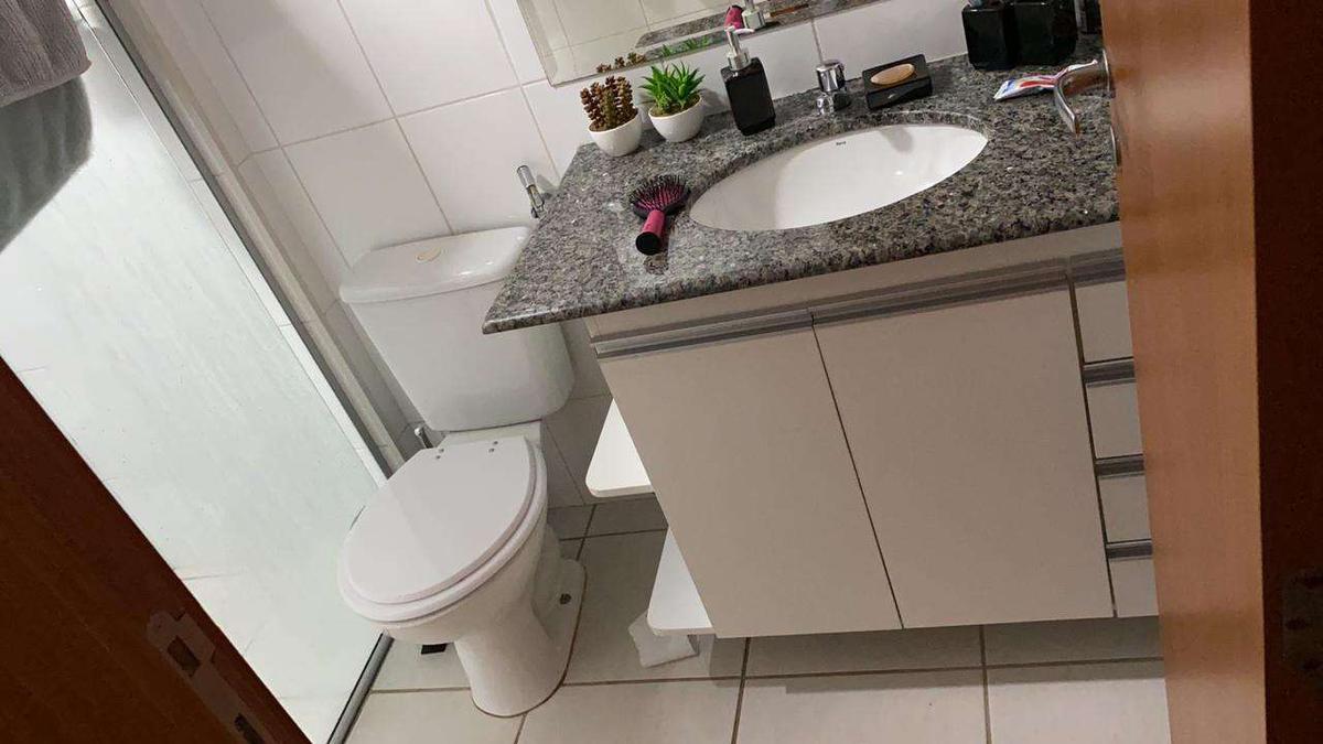 Banhos com armários e box em vidro temperado;