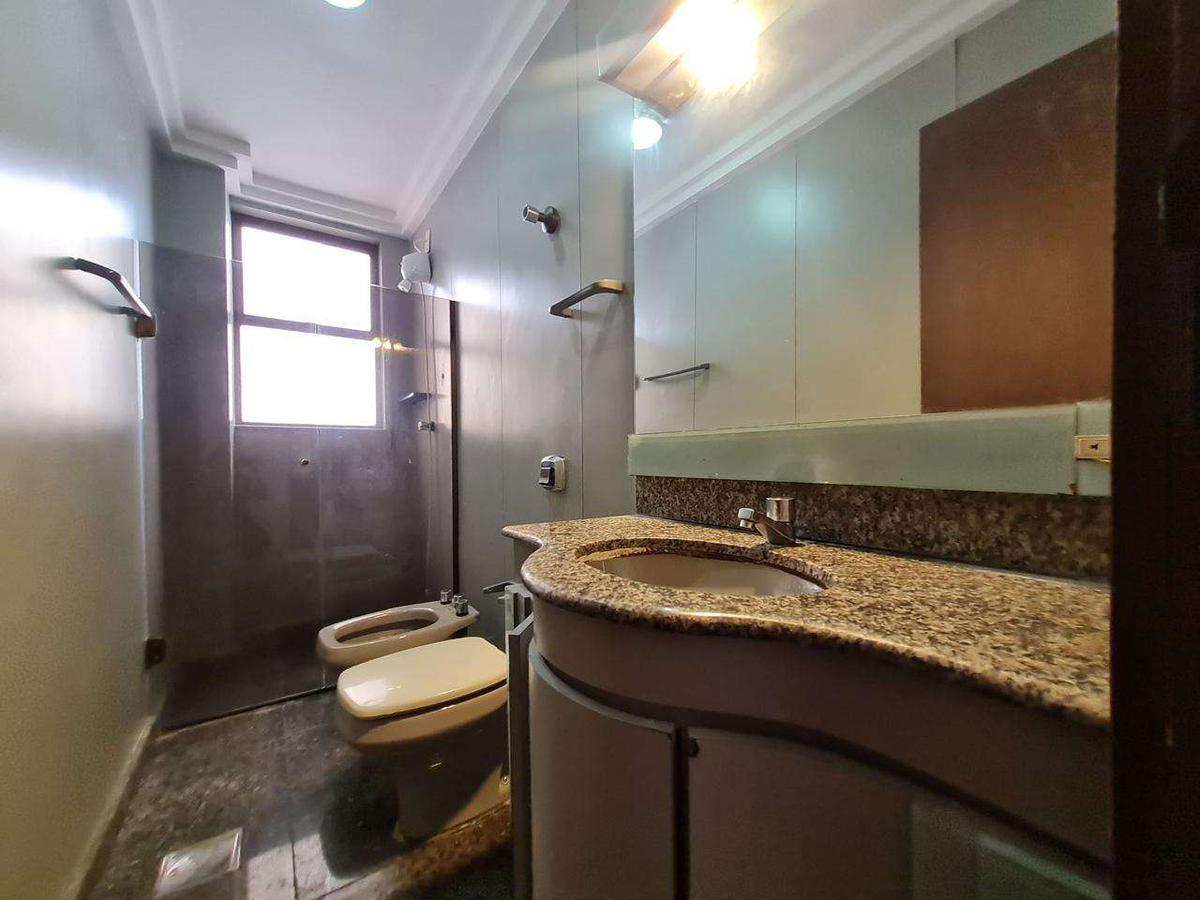 Banheiro social com bidê, espelho e armários planejados