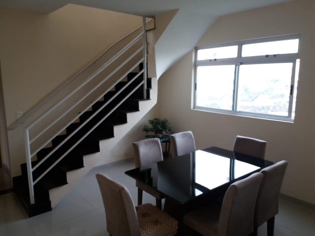 2 salas, uma no 1o pavimento e outra no andar de cima, q eu transformei em quarto e escritório, nesta configuração tem mais 3 quartos sendo 1 suite com varanda (virada para a área de preservação), são 3 banheiros no total, área externa do terraço 90% coberta com vista definitiva para a serra do curral em BH e mata, terraço bem grande, com banheiro.Tem armário de cozinha na pia e fogão, energia solar 300Kw, que supre a casa e sobra, 2 vagas independentes de garagem cobertas e livres sob pilotis q são de frente uma pra outra, dá pra qq um dos carros sair sem prender o outro, e ainda cabem mais duas motos.O apto está praticamente standard, exceto pelo armário de cozinha debaixo da pia, espelhos nos banheiros e tela de proteção criança/anti insetos, o resto está fácil de deixar como o novo proprietário desejar. A vista é definitiva nos fundos e não tem como construirem prédios nos fundos pq é um condomínio fechado de casas, e mata preservada.Prédio com guarita, cerca elétrica, portão automático, alarme de incendio, elevador, 6 andares com 2 imóveis por andar, 12 unidades, 2 andares de estacionamento e mais um de área de lazer com churrasqueira, 2 banheiros, salão de festas fechado e depósito, não tem piscina, mas tem um gramado enorme para colocar uma e estão estudando isso pro futuro.De um lado tem lotes vagos, do outro um prédio com quase 1 lote de distancia, nos fundos mata de preservação e apos um condominio fechado de casas.A cobertura fica na Alameda das Cotovias 53/Cabral/Contagem/MG, rua ao lado do CEFET, proximo a comércio, Shopping Contagem, saida pra pampulha e para 040, uma das ruas mais tranquilas do Cabral, fica nos fundos do condomínio portal do sol. Tem uma escola infantil particular a 200mts, que atende até 5°ano, Escola Paulo Freire uns 800mts q atende até o 2o grau e CEFET 2° grau e superior.