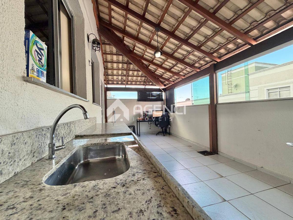 Apresentamos uma belíssima cobertura, espaçosa e muito bem distribuída, ideal para quem busca conforto, qualidade de vida e um imóvel pronto para morar.O imóvel conta com 3 quartos amplos, sendo um deles reversível, permitindo transformar o ambiente em um segundo espaço de sala, escritório ou manter como dormitório, de acordo com a necessidade da família. Todos os quartos possuem armários planejados, garantindo praticidade, organização e elegância.A sala para dois ambientes oferece ótimo espaço, iluminação e integração, proporcionando um ambiente acolhedor tanto para o dia a dia quanto para receber visitas. A cozinha planejada conta com armários de excelente qualidade, ótimo aproveitamento de espaço e funcionalidade, além de estar integrada à área de serviço.No andar superior, a cobertura surpreende com um terraço amplo, perfeito para lazer e convivência. O espaço possui telhado colonial, bancada em granito e churrasqueira, criando um ambiente ideal para momentos especiais com família e amigos, seja para eventos, descanso ou refeições ao ar livre.O condomínio se destaca pela infraestrutura completa, oferecendo lazer e segurança para toda a família: Piscina adulta e infantil Academia equipadaSalão de festasQuadras de esportesPlayground Portaria 24 horas, garantindo tranquilidade e controle de acessoAlém disso, o imóvel conta com 1 vaga de garagem, garantindo comodidade no dia a dia.Com todos esses diferenciais, esta cobertura é perfeita para quem busca conforto, praticidade, segurança e um excelente espaço privativo, em um condomínio que oferece lazer completo para toda a família.