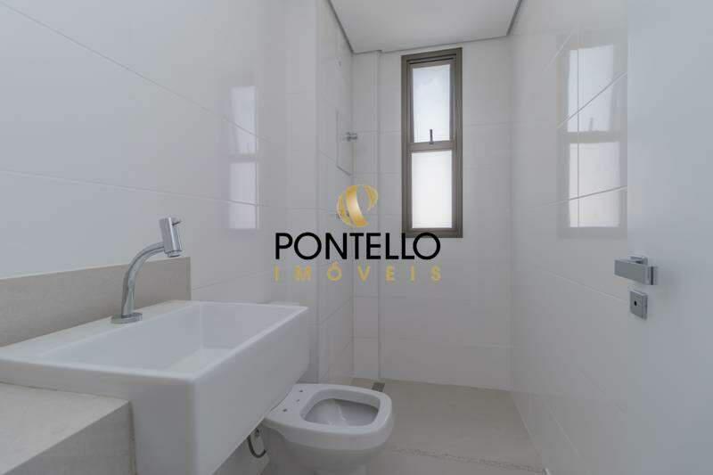 Banheiros (suíte e social) com ventilação natural e acabamento em porcelanato.