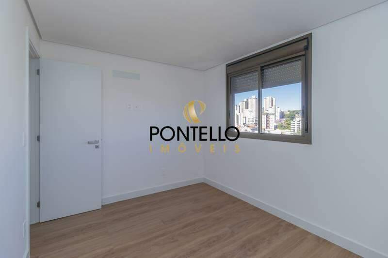 3 quartos com piso vinílico e janelas com venezianas integradas, sendo 1 suíte.