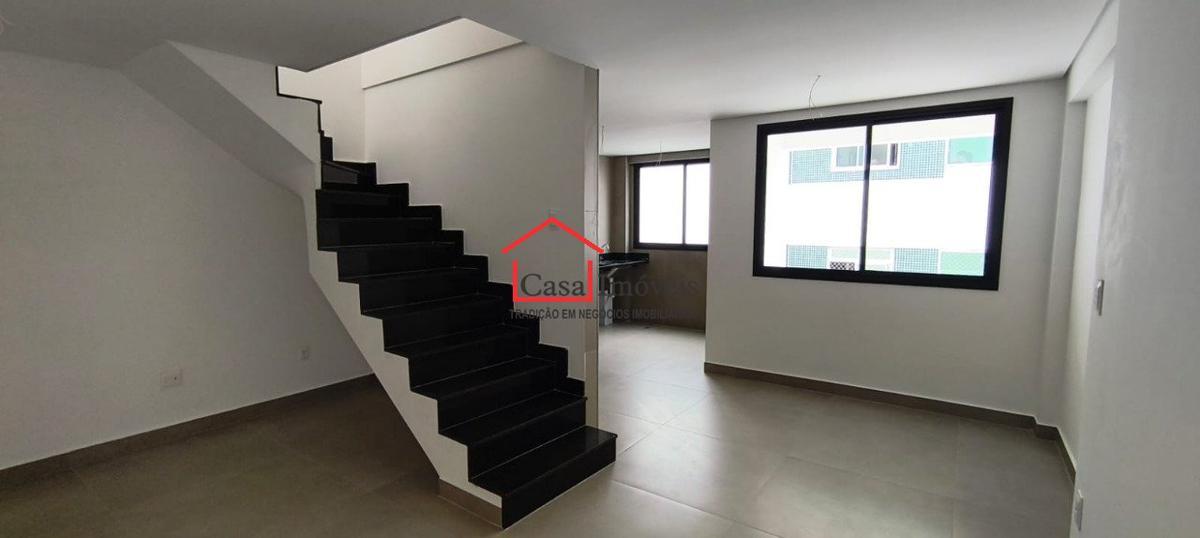 Prédio estruturado, com elevador, espaço, gourmet, espaço kids, com 16 aptos sendo 4 por andar, elevador, espaço gourmet, kids, água e gás com medidores individuais. 03 vagas de garagem em linha. elevador com 2 paradas ( 1º e 2° piso da cobertura) 1º piso: sala para 2 ambientes conjugada com cozinha ampla e área de serviço, todo o piso em porcelanato, 03 quartos com piso laminado de madeira, banho social e suíte em porcelanato, bancada em granito com cuba sobreposta, escada toda em granito saindo do canto da sala, dando acesso ao 2º piso composto de: amplo terraço livre, com revestimento e piso porccelanato.