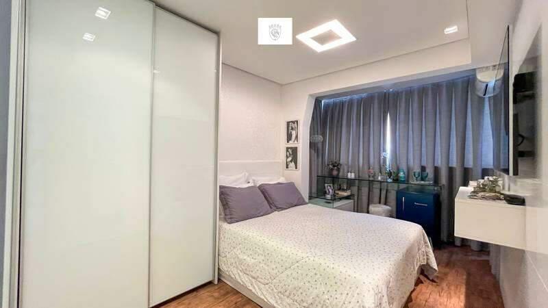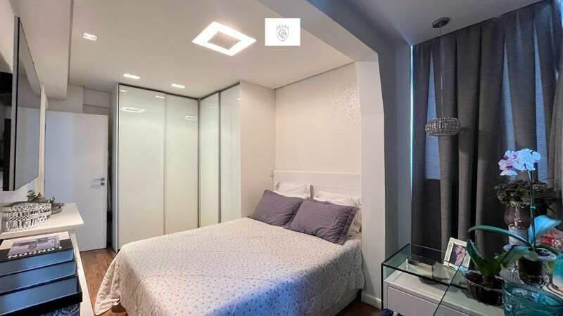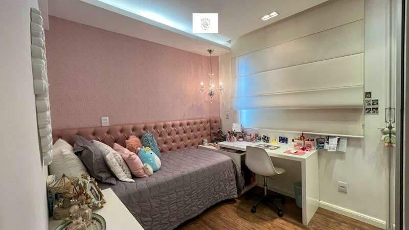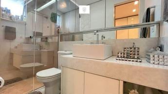 3 Quartos amplos com armários planejados, piso em vinílico, sendo uma suíte com iluminação planejada, pia em cuba, armários planejados, espelho e box em blindex