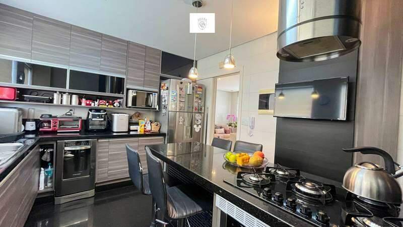 Cozinha espaçosa com armários planejados, bancada americana, piso e bancada em granito