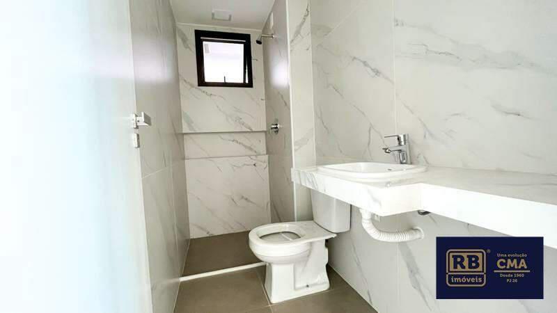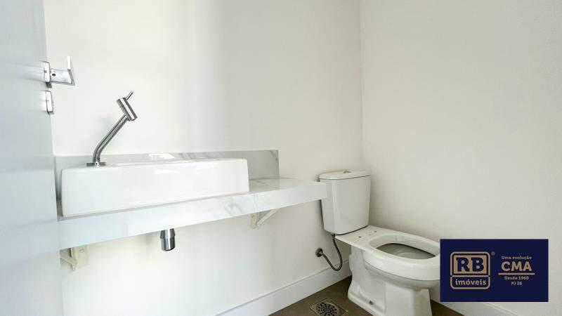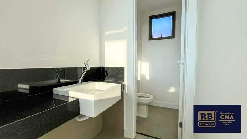 Banheiro social e lavabo com acabamento em granito.