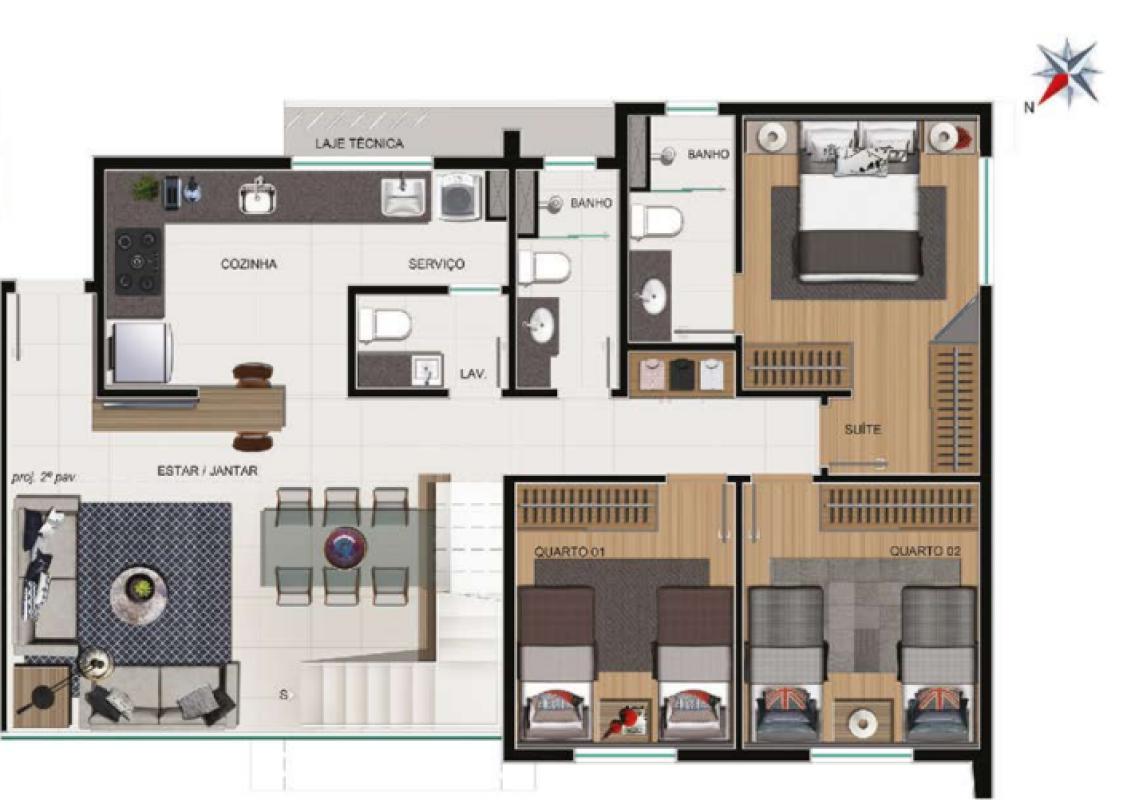 Cobertura Alto Padrão (47,65m terraço)3 quartos com suíteFechadura digitalVenezianas automatizadasLavaboTomadas USBHidrômetro com água quente e fria