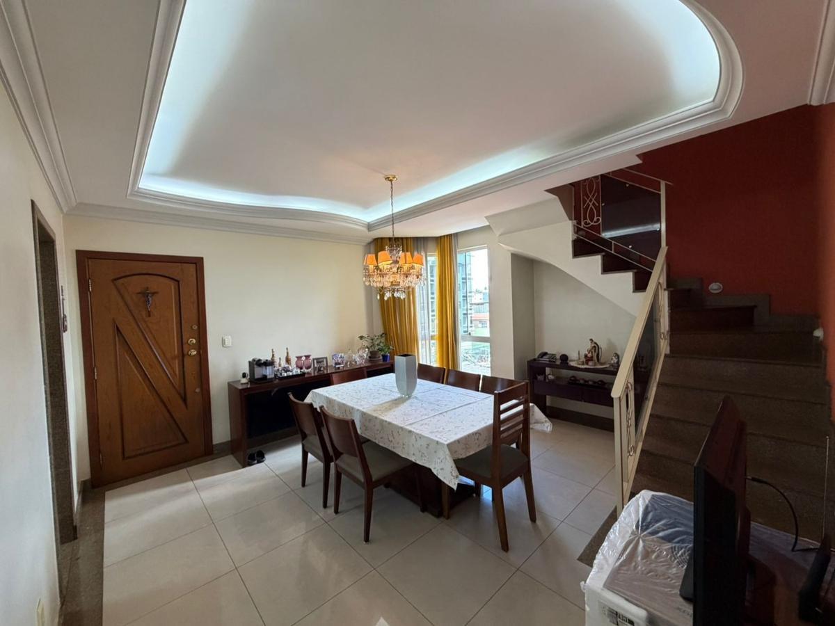 Cobertura 3 quartos com 2 suites - elevador - eldorado - contagem/mg excelente cobertura com 161m², sendo: primeiro pavenidaimento: dois quartos sendo um com suite e closet, sala ampla, cozinha planejada, área de serviço, banheiro social. segundo pavenidaimento: quarto com suite, sala ampla com espaço para home office, lavenidaabo e amplo espaço com telhado colonial e fechamento em blindex. armarios planejados nos quartos, cozinha, área de serviço e banheiros. ar condicionado nas duas suites. piso laminado nos quartos e porcelanato nos demais ambientes. bancadas em granito. gas canalizado individual, elevadorua banheiros com aquecimento solar (tubos de vacuo). forma de pagamento: aceita financiamento bancário e uso do fgts. estuda permuta por casa ou casa geminada com habite-se na regiao do eldorado ou centro de contagem. agende sua visita.