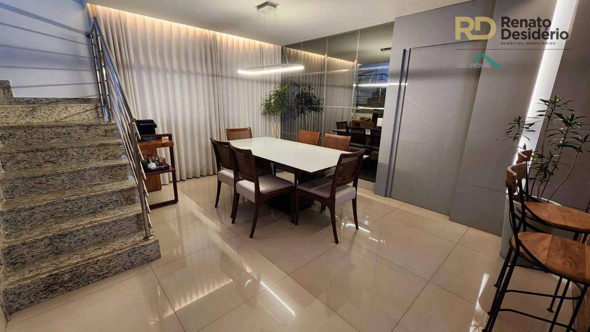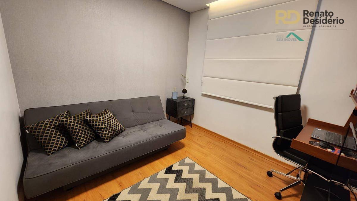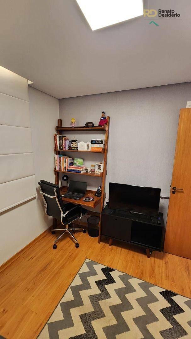 No nível superior, existe uma ampla sala de tv, com armários planejados para guardar itens da casa e um frigobar.