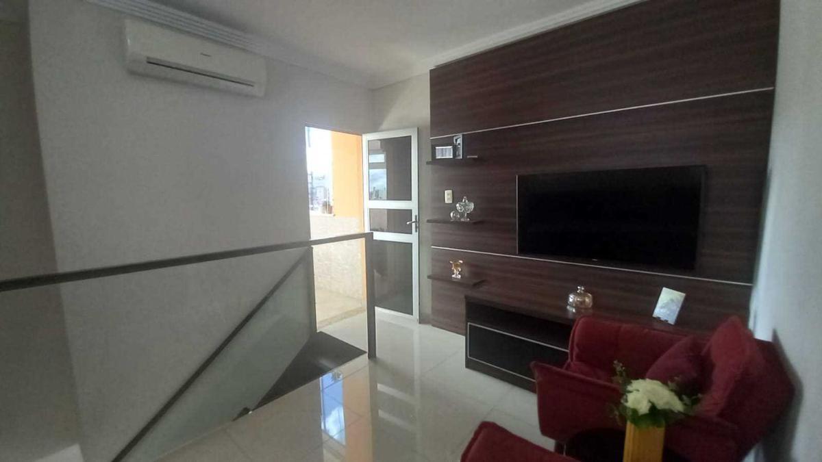 SALA DE TV COM AR CODICIONADO, PISO EM PORCELANTO, LAVABO, ESPAÇO GOURMET COM BANCADA EM GRANITO E CHURRASQUEIRA, TERRAÇO LIVRE DESCOBERTO COM VISTA DEFINITIVA E COM BASTANTE VENTILAÇÃO.