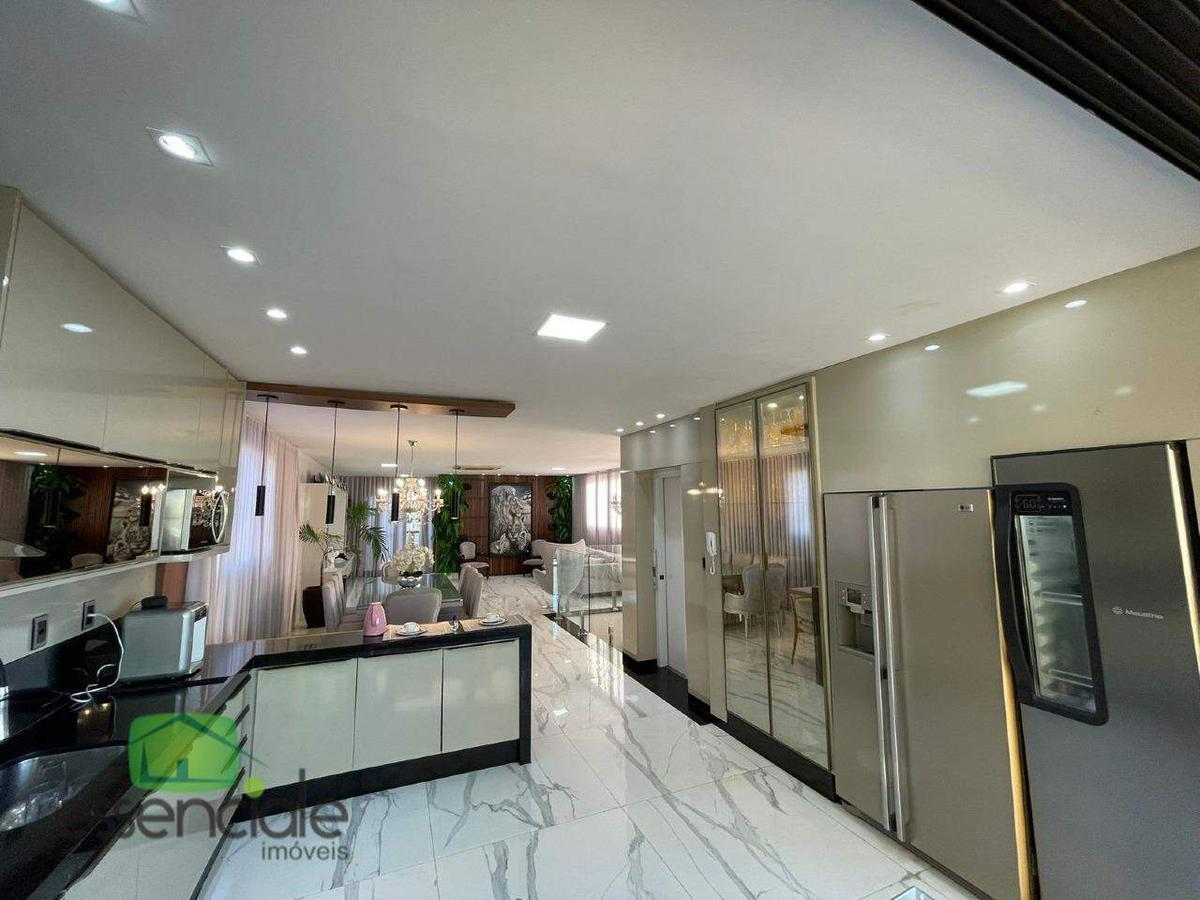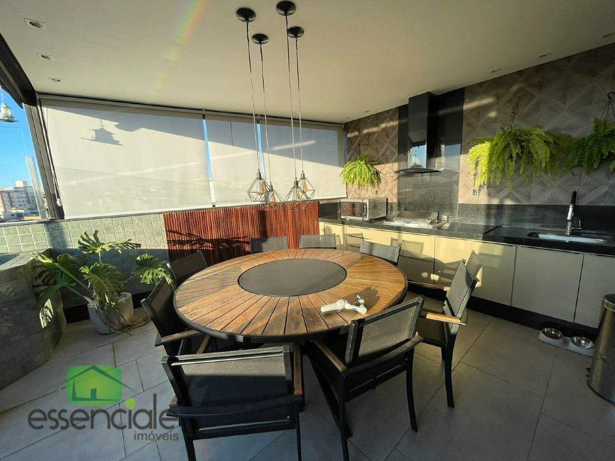 Luxuosa cobertura porteira fechada à venda no bairro Fonte Grande, em Contagem, com 257m², 3 suítes, 4 vagas de garagem e acabamento de alto padrão.