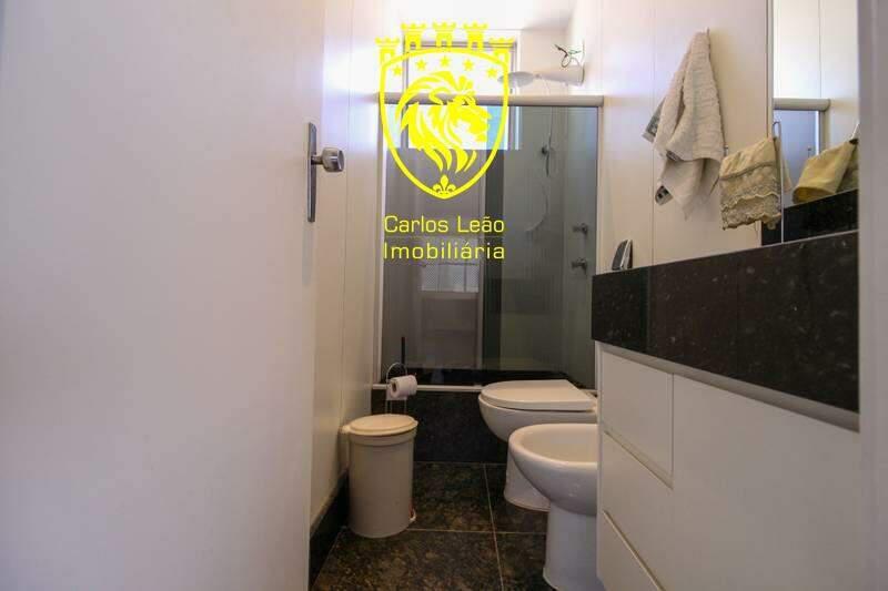 ¿ Banheiros: Banho da suíte e banheiro social com piso em granito, bancadas em mármore, box em vidro temperado, armários e espelhos.