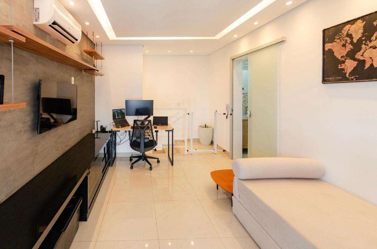 O imóvel é composto por 3 quartos, com marcenaria planejada, além de sala aconchegante e cozinha montada. A cozinha conta com cooktop, exaustor, forno elétrico e lava-louças, oferecendo funcionalidade e aproveitamento inteligente dos espaços. Os ambientes principais possuem ar-condicionado com tecnologia Wi-Fi, agregando mais conforto e praticidade à rotina.