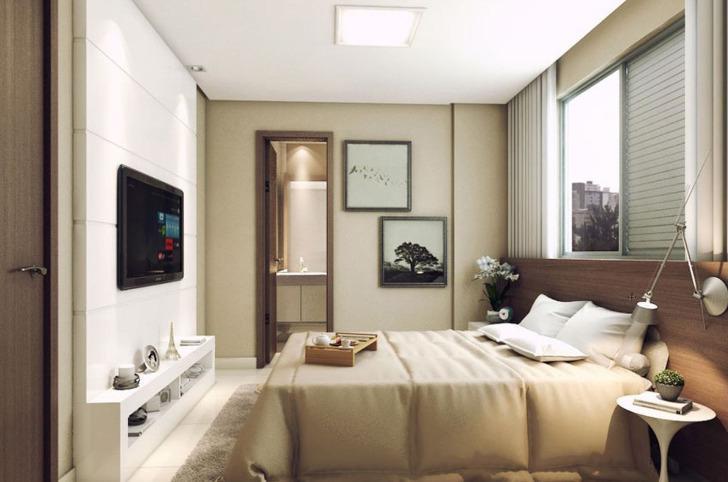 Opção de modulação prévia para apartamento de 02 quartos com aumento da sala.