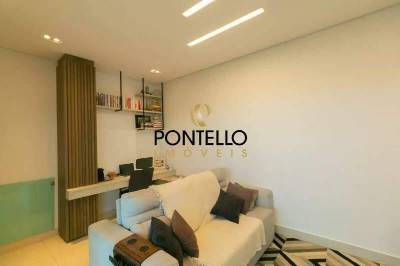 1 Sala ampla para dois ambientes com piso em porcelanato, teto com rebaixamento em gesso e iluminação planejada