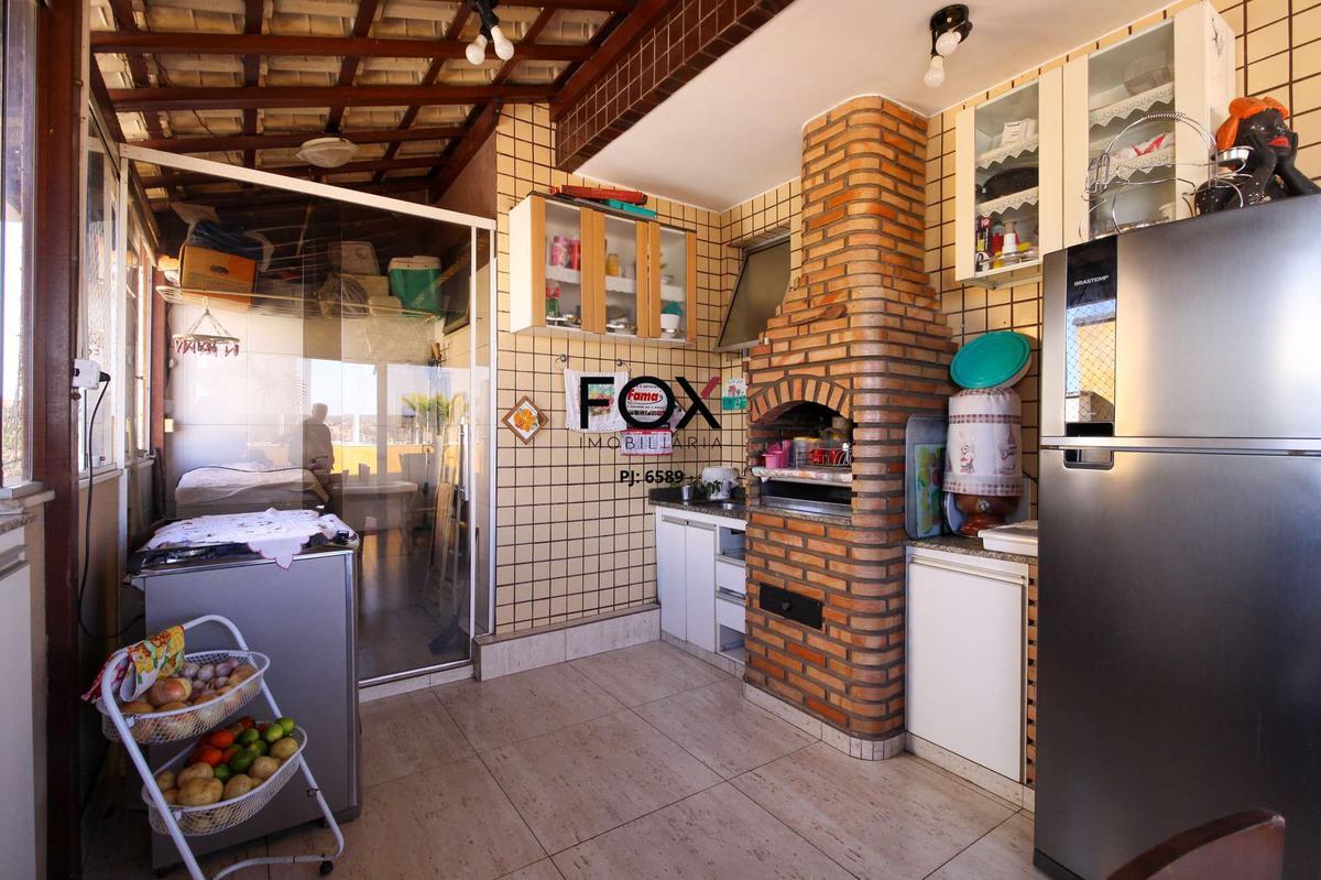 Cobertura à venda com aproximadamente 176m²; 1° pavenidaimento: 01 sala ampla para dois ambientes, piso em cerâmica; 01 cozinha com armários planejados, piso em cerâmica; 03 quartos com armários planejados, sendo uma suíte e outro com varanda, piso em cerâmica; 02 banho social com box blindex e armário planejado, piso em cerâmica; 2° pavenidaimento: 01 sala clara e arejada, piso em cerâmica; 01 banho social com box blindex, piso em cerâmica; 01 varanda coberta, armários planejados com churrasqueira, piso em cerâmica; área de serviço com armários, piso em cerâmica; 02 vagas de garagem cobertas. condomínio: portão eletrônico; jardim; gás canalizado; interfone.