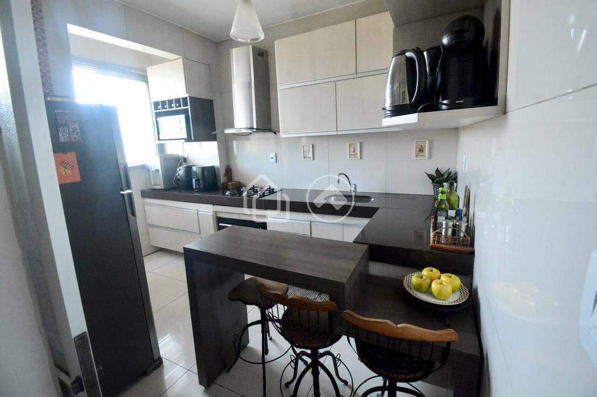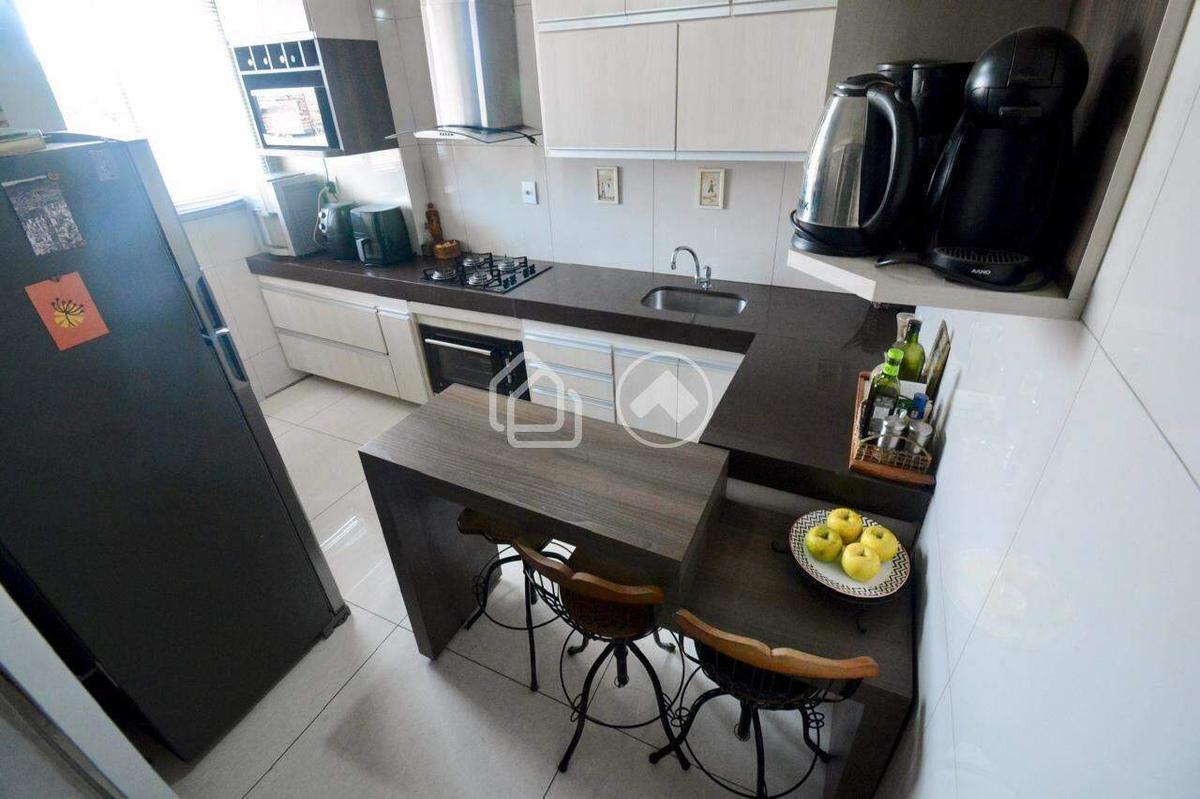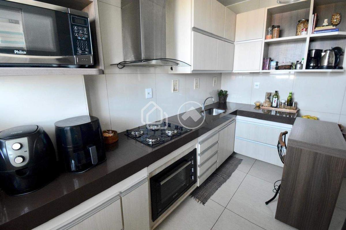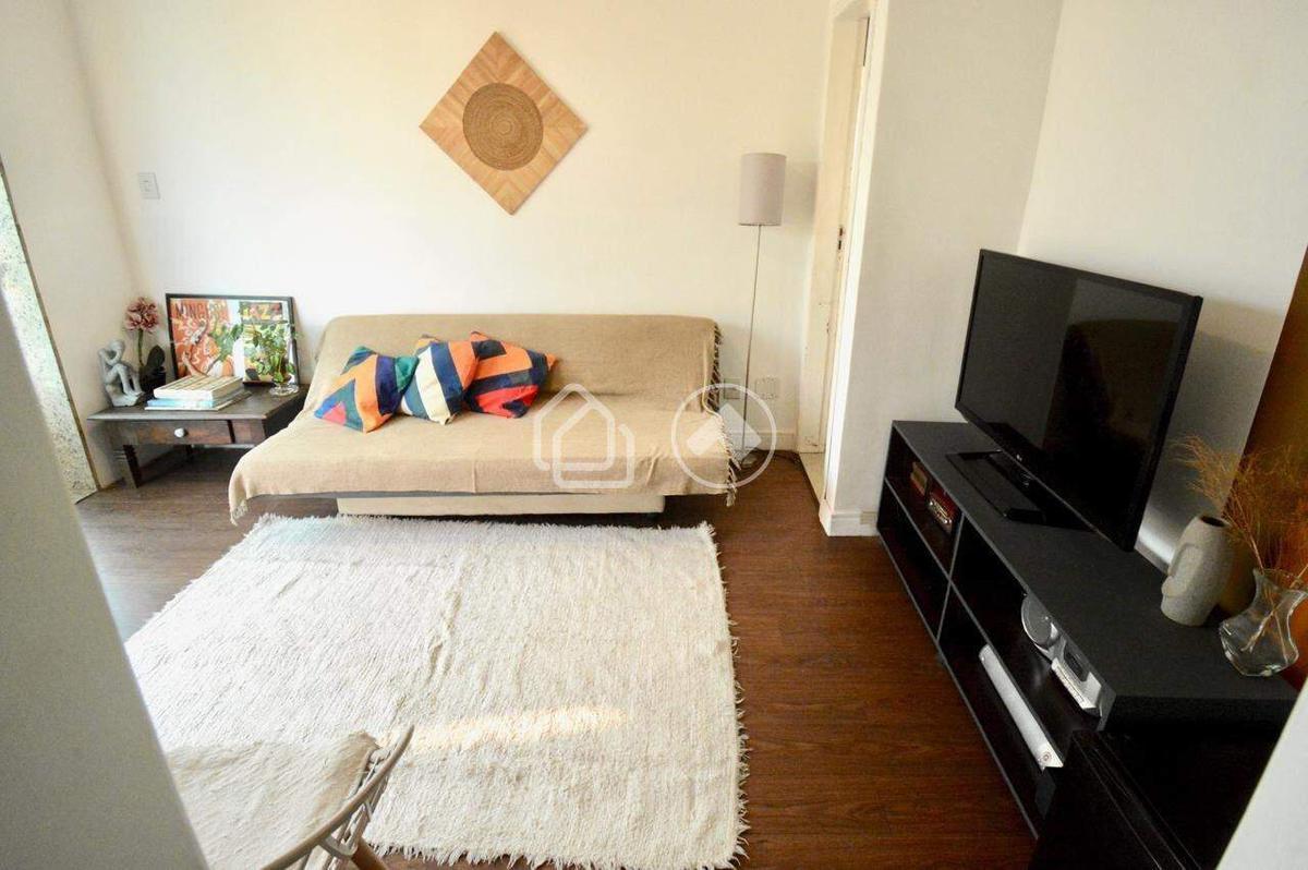 2 quartos, 1 banheiro social, cozinha com pequena área de serviço separada e sala para 2 ambientes com escada em peroba rosa e guarda corpo de vidro.