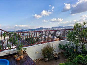 Terraço: 1 sala grande, 1 banheiro, piscina aquecida e uma vista definitiva.