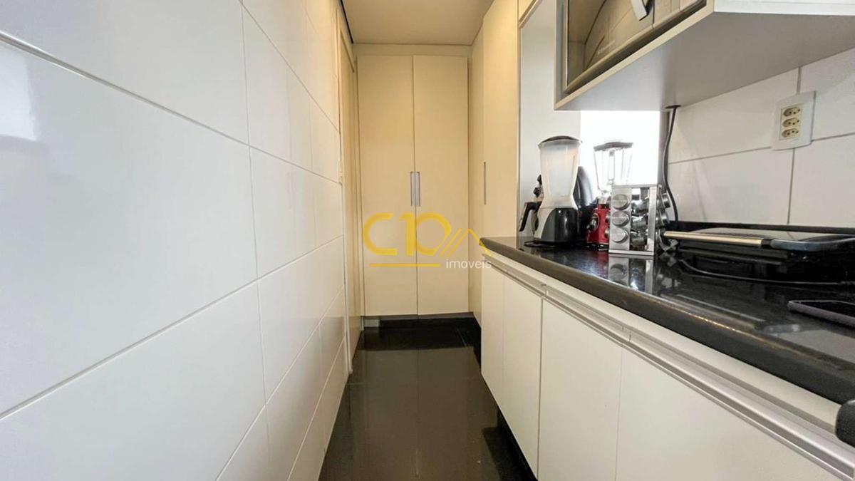 Área gourmet com bancada em granito e varanda espaçosa