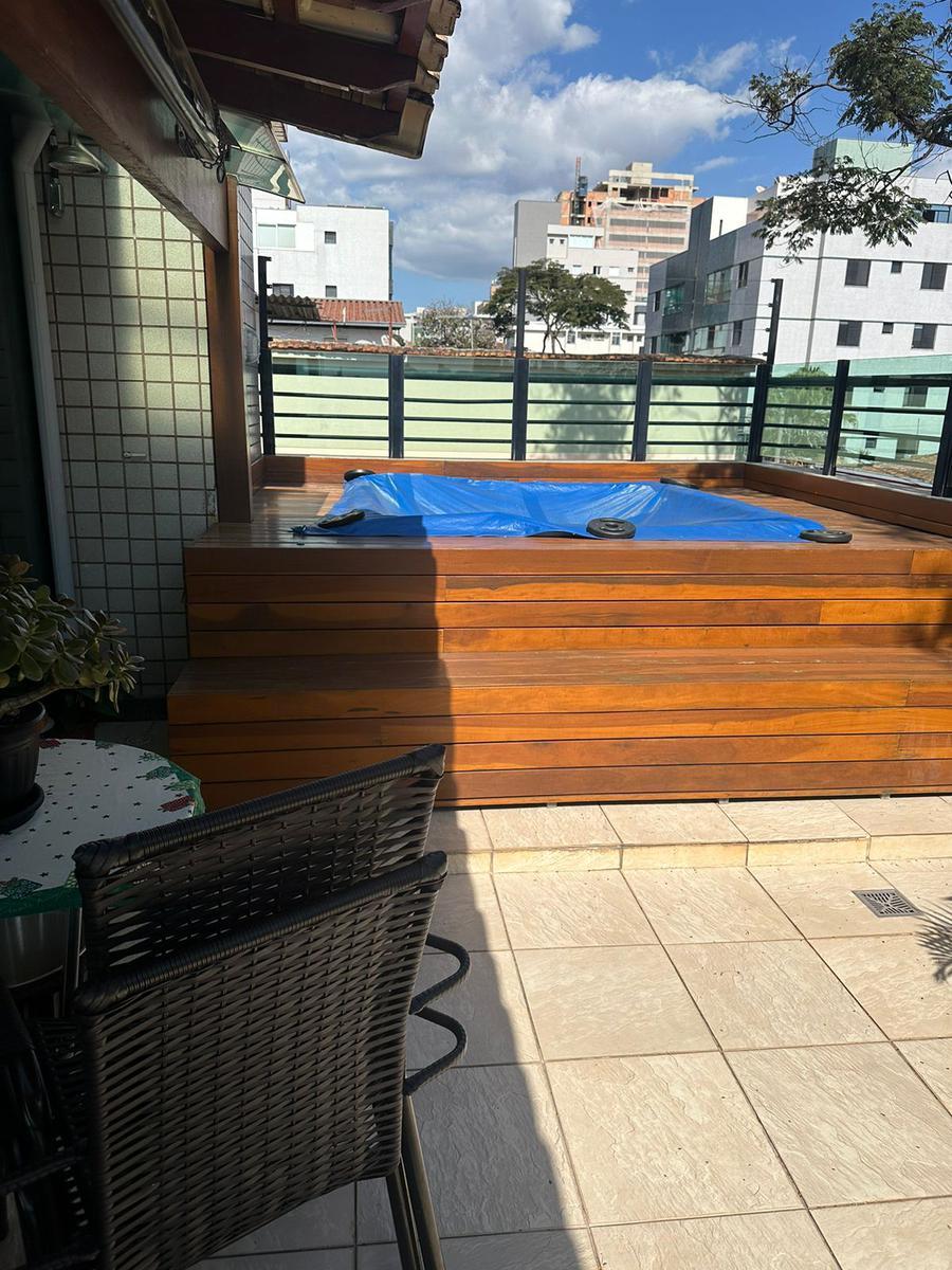 Prédio excelente localização, todo revestido em cerâmica, portão eletrônico, 03 pavimentos, 02 apartamentos por andar, interfone, jardim, próximo todo tipo de comercio em geral, padarias, supermercados BH, faculdades, perto da Academia da Policia Militar, varias linhas de ônibus sentido bairro e centro, fácil acesso para o centro, próximo a estação do Carlos Prates, perto das avenida do contorno e avenida augusto de lima, etc. Excelente cobertura: Cobertura impecável, muito bem cuidada, sem defeitos. PRIMEIRO NÍVEL: Uma sala para dois ambientes piso em tábua corrida, 3 quartos com pisos em tábua corrida, armários, sendo 1 suíte piso em granito box blindex, banho social com box blindex, armário, piso em granito , cozinha de ótimo tamanho com armários, bancada em granito e área de serviço.SEGUNDO NÍVEL : ótima sala com piso em porcelanato, lavabo, acesso para área externa parcialmente coberta com piso em cerâmica, pia com bancada em granito, uma área livre descoberta equipada com deck em madeira maciça em excelente estado com jacuzzi para 4 pessoas, Vista definitiva e 02 vagas de garagem paralelas livres e cobertas. Acesso ao imóvel com 02 lances e meio de escada. Piso: sala e quartos em tabua corrida.Piso: corredor em tabua corrida.Piso: banheiros em granito e cerâmica.Piso: cozinha em granito e bancada em granito.Piso: área de serviço em granito.Piso: área livre da cobertura em cerâmica.OBS: 02 VAGAS DE GARAGEM PARALELAS E COBERTAS.
