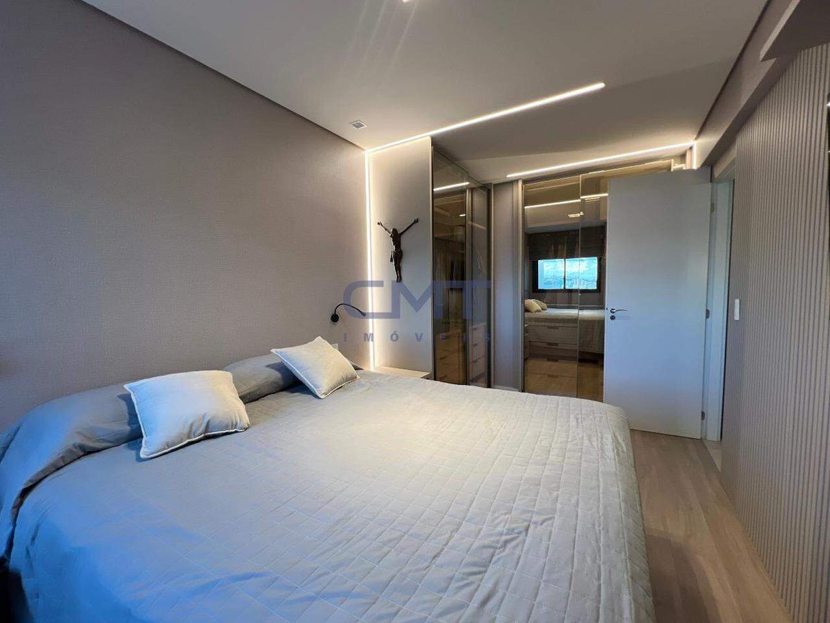 O imóvel conta com 3 quartos, sendo 2 suítes e 1 atualmente convertido em escritório (com fácil reversão), além de ambientes amplos e bem planejados. Todas as janelas possuem cortinas e persianas, sendo persianas elétricas nos quartos. As paredes são revestidas com papel de parede, agregando sofisticação aos ambientes.