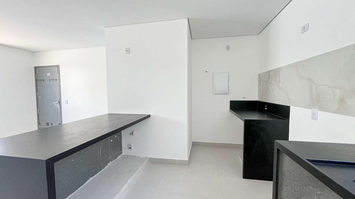 Cobertura moderna e bem distribuída, com 197m² de área privativa. Conta com sala ampla integrada à cozinha, lavabo e 3 suítes, sendo uma delas master com closet. O acabamento é de alto padrão, com piso em porcelanato, rebaixamento em gesso e janelas com venezianas nos quartos.