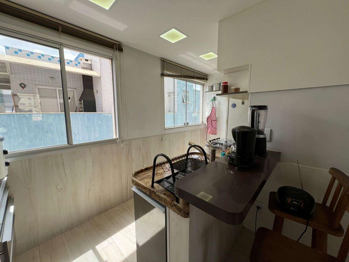 Conta com varanda, área de serviço e ambientes bem distribuídos. A cozinha e os banheiros possuem armários planejados, além de box nos banheiros, oferecendo funcionalidade e organização no dia a dia. A cobertura dispõe ainda de área externa, perfeita para criar um espaço de convivência, relaxamento ou lazer.