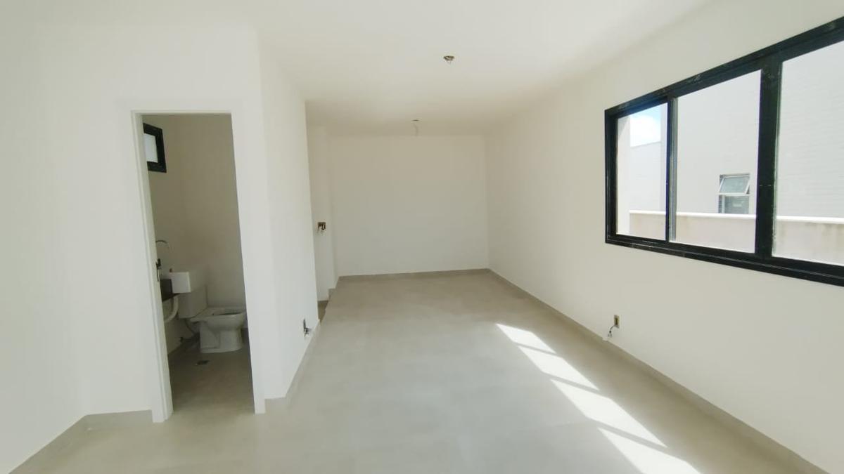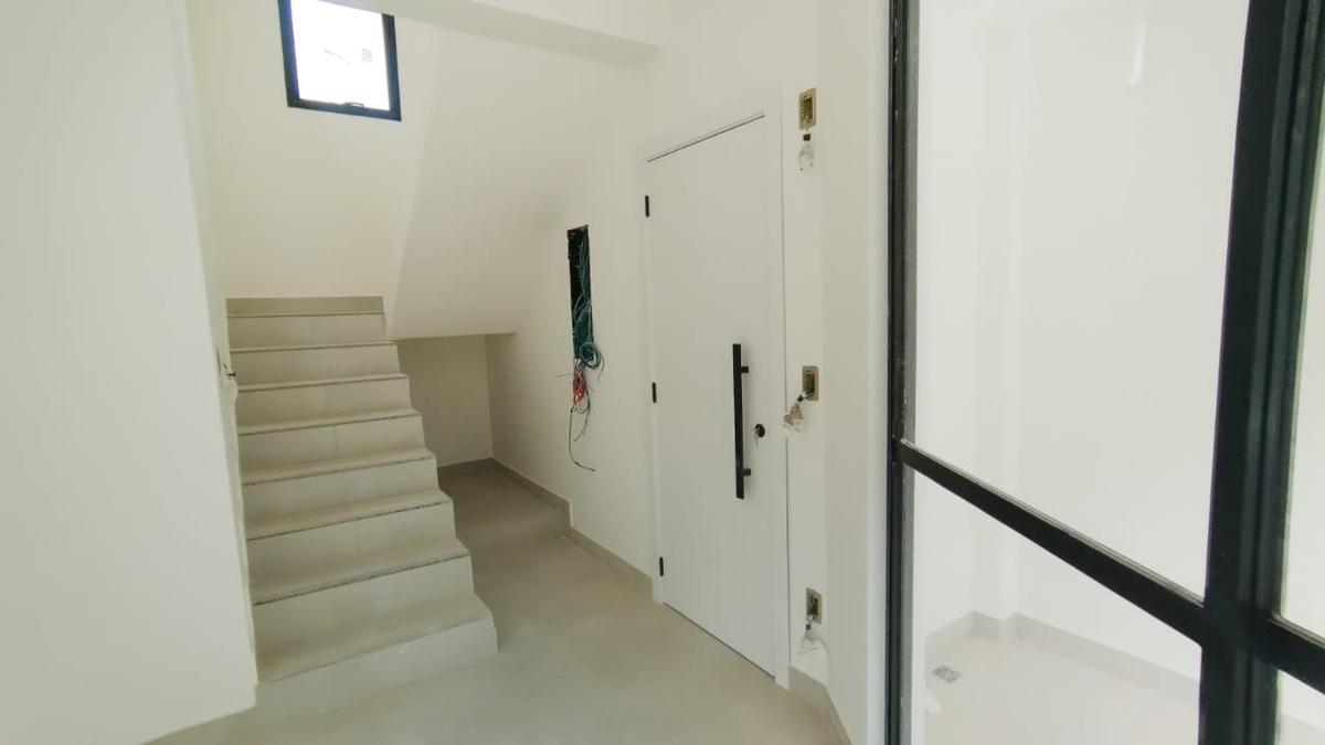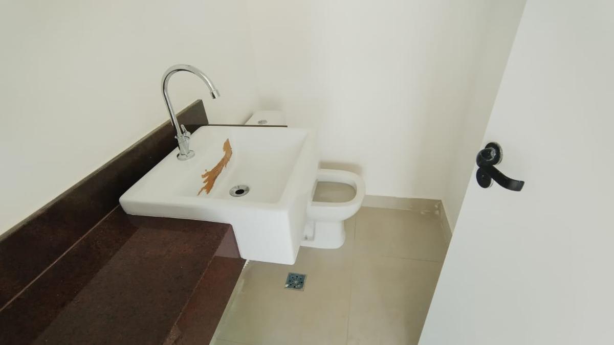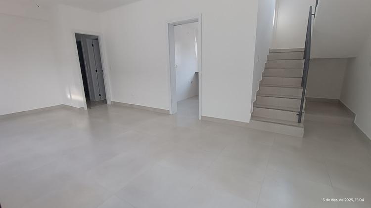 1º piso: sala para 2 ambientes com piso porcelanato, varanda com porta de vidro, 03 quartos com piso laminado de madeira, 02 banhos sendo um suíte e outro social, cozinha espaçosa com bancada em granito e piso porcelanato, escada de acesso ao 2º piso saindo da sala, toda em alvenaria, com piso porcelanato.