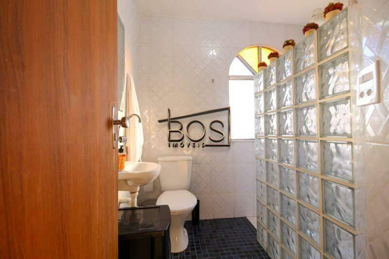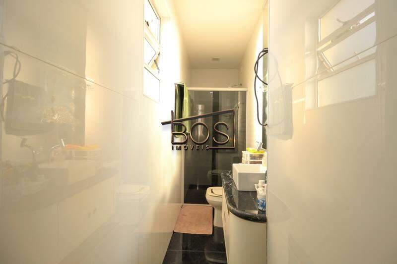 ¿ Banheiro social bem equipado com armário, box blindex, bancada em granito e piso em porcelanato.