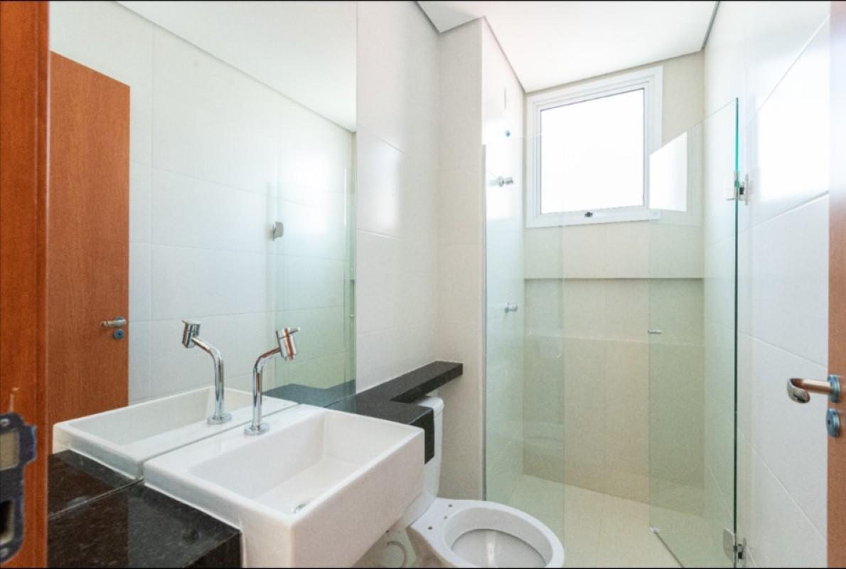 * Banheiros com piso em porcelanato gris, paredes revestidas com cerâmica e detalhes em porcelanato e bancadas em granito. Incluso na entrega: box blindex, nicho no box e espelho.
