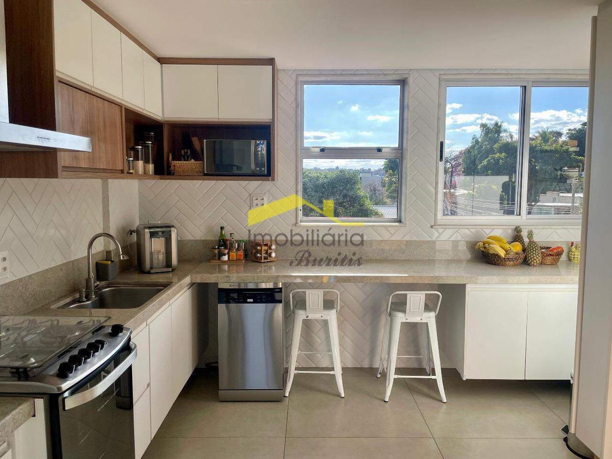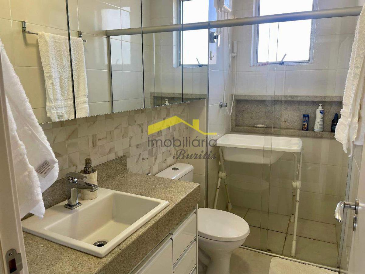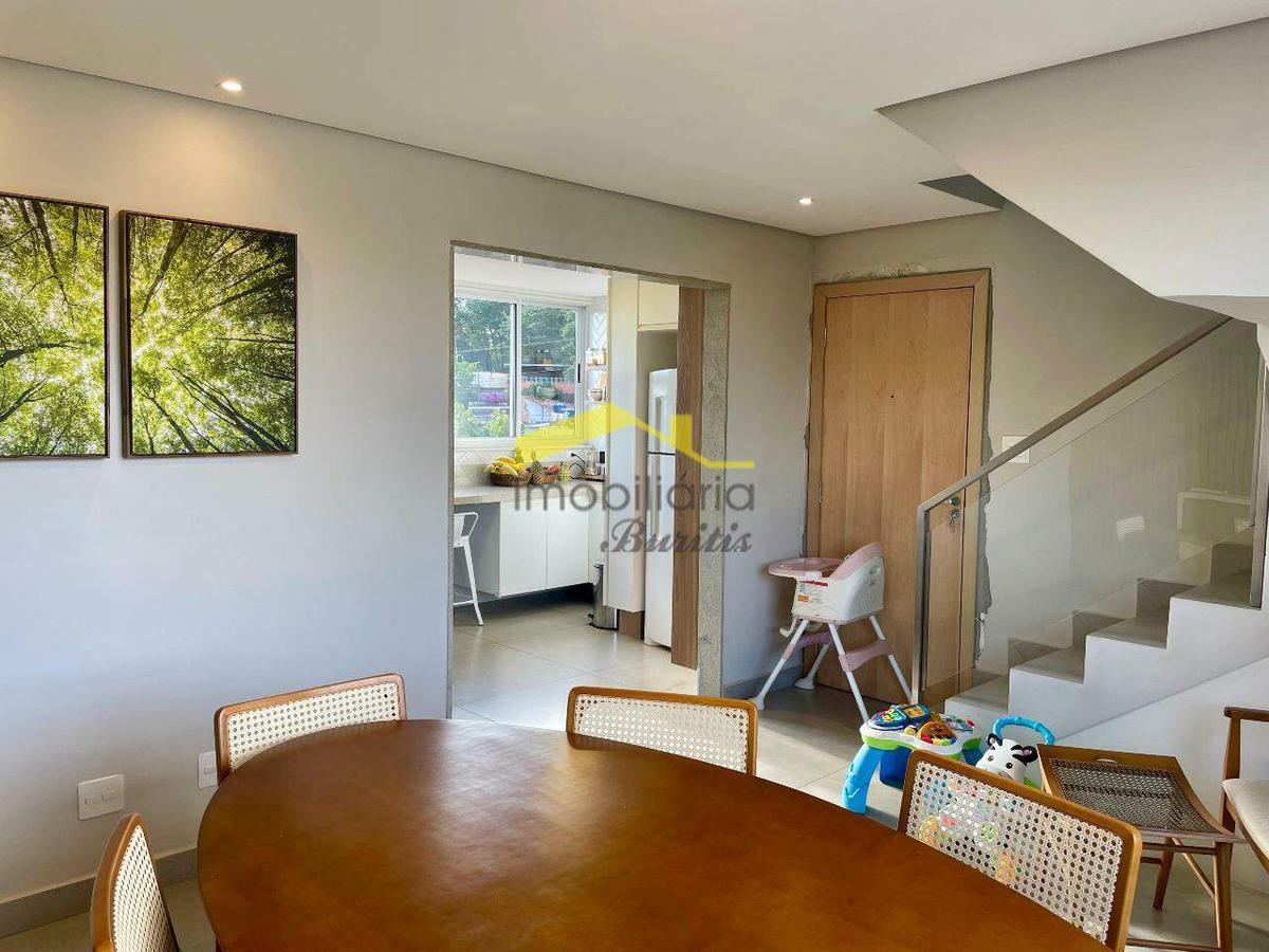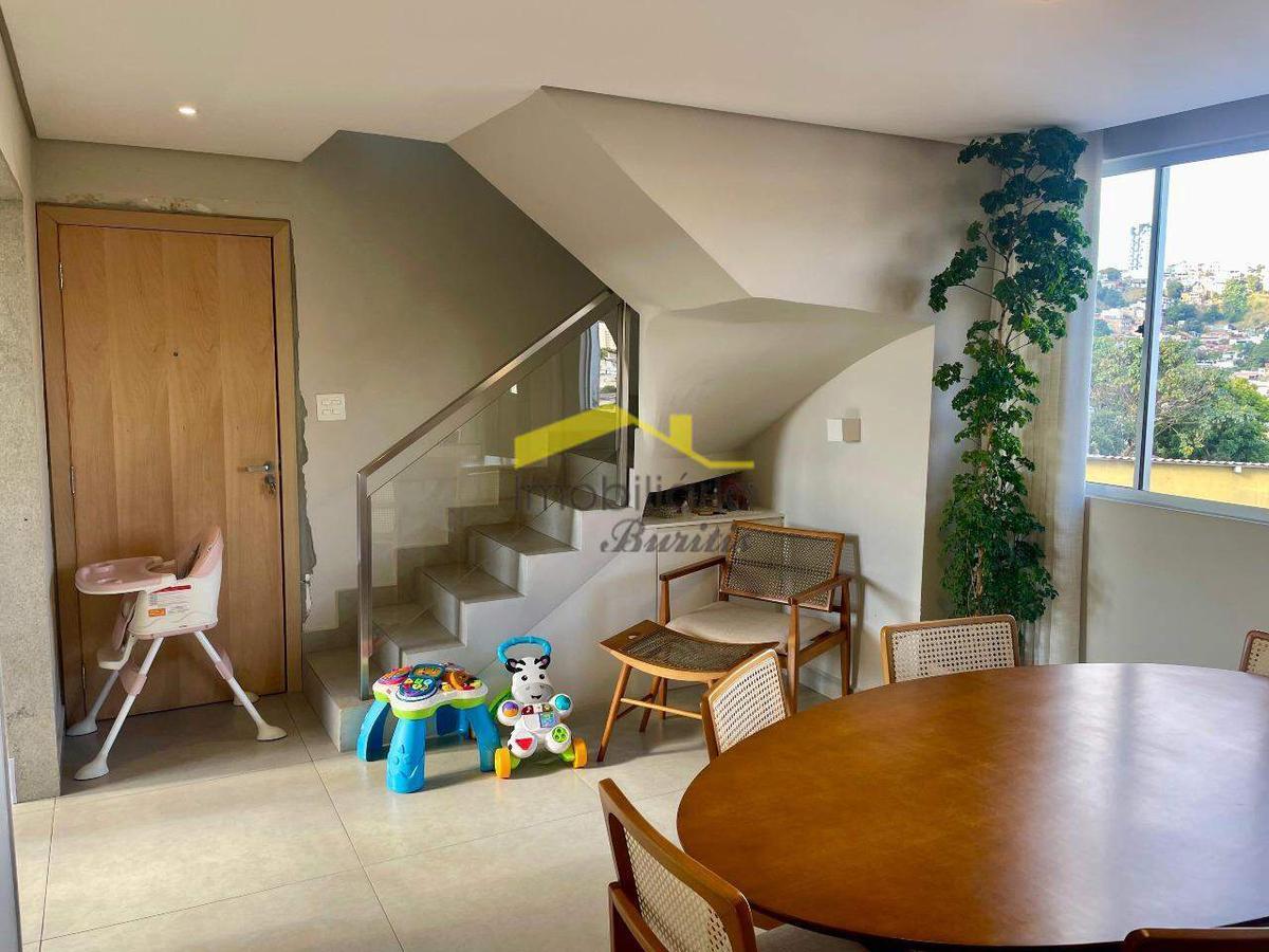 Cobertura duplex com 168 m², dividida em dois pavimentos. No primeiro piso, sala espaçosa com piso em porcelanato, janelas amplas em alumínio e vidro, com sol da manhã e vista definitiva. São três quartos com armários, sendo um adaptado como escritório, todos com piso laminado e venezianas. Suíte e banheiro social com bancadas em granito, armários e box em blindex.