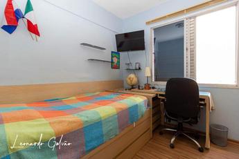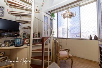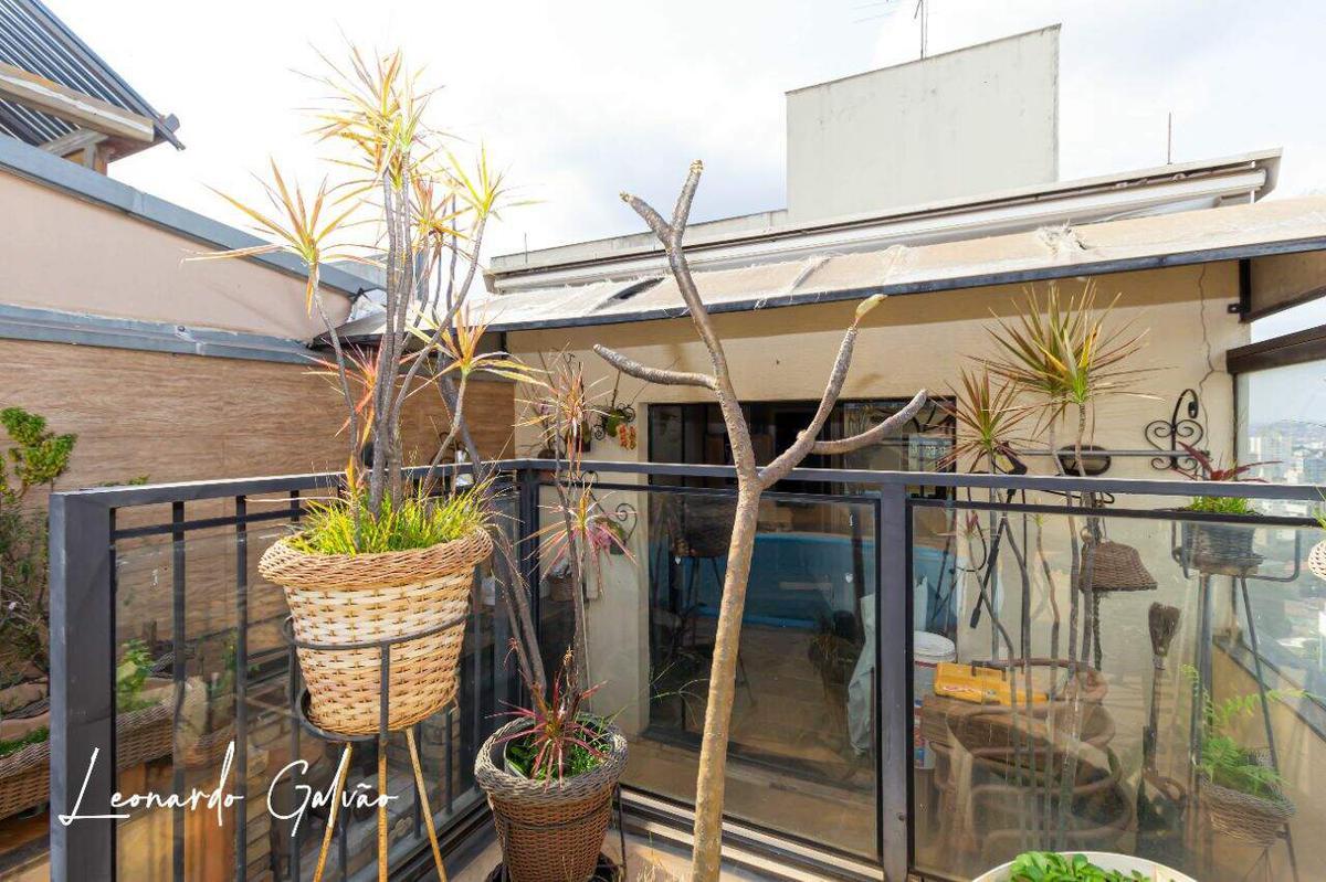 Cobertura com 3 quartos, primeiro nível com quarto e suite com armários, banho, cozinha, área de serviço independente, despensa, quarto de empregada com banheiro. Segundo nível com pequeno quarto, sala, lavabo, churrasqueira, atelier ou oficina de trabalho e piscina. Diferencial deste imóvel é a localização e a vista panorâmica. As 2 vagas são paralelas e cobertas. Prédio com elevadores, salão de festas, espaço kids, cftv, guarita, portão eletrônico, gás canalizado e poço artesiano, que possibilita condomínio econômico.