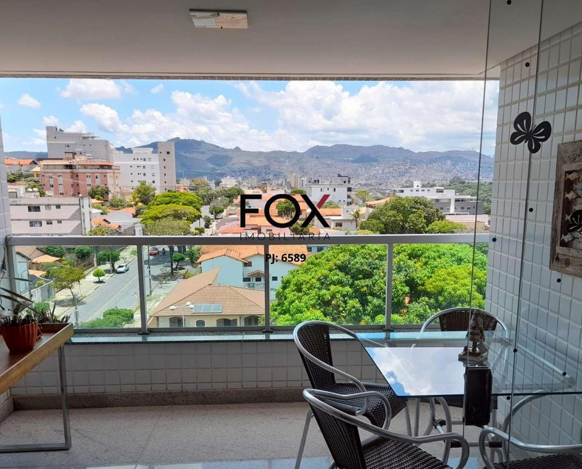 Cobertura com aproximadamente 265m² 1° pavenidaimento: sala para 02 ambientes com piso em porcelanato; 04 quartos sendo 01 suíte, armários em todos os quartos (1 dos quartos foi transformado em closet); cozinha rica em armários com piso em granito; varanda lateral na sala; escadaria em granito. 2º pavenidaimento: sala de tv com piso em porcelanato; 01 suite; cozinha; piscina com vista panorâmica para o centro de bh; porta externa para elevador privativo das coberturas do 2º pavenidaimento; 03 vagas cobertas e demarcadas e livres.