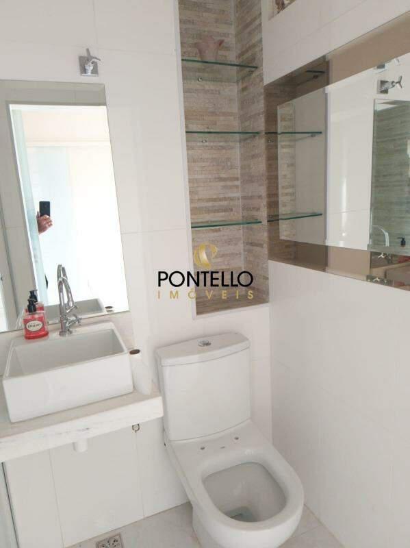 ? Banho da Suíte: Com bancada em granito e box em blindex.
