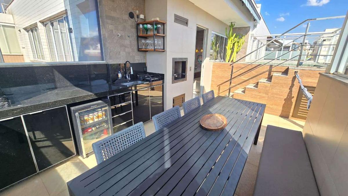Cobertura à venda - 3 quartos (1 suíte master com closet) - 3 vagas - alto padrão - santa rosa cobertura duplex com acabamento de alto padrão e localização privilegiada, ideal para quem busca conforto, sofisticação e qualidade de vida. o imóvel foi planejado com atenção aos detalhes, oferecendo marcenaria sob medida, climatização completa e integração perfeita entre os ambientes. 1º pavenidaimento 3 quartos, sendo 1 suíte master com closet e armários planejados de alta qualidade todos os quartos com ar-condicionado e venezianas integradas sala íntima com piso em porcelanato banheiro social com armário sob medida e acabamento refinado 2º pavenidaimento sala ampla para dois ambientes, com rebaixamento em gesso, projeto luminotécnico e ar-condicionado sala de jantar integrada e lavenidaabo cozinha moderna e funcional, rica em armários planejados área gourmet coberta, com churrasqueira e bancadas em granito piscina aquecida de 6.000 litros, com teto retrátil e vista privilegiada diferenciais elevador com acesso até o segundo pavenidaimento da cobertura sistema de aquecimento de água em torneiras e chuveiros acabamento de alto padrão: porcelanato nas áreas sociais e laminado nos quartos marcenaria planejada em todos os ambientes 3 vagas de garagem cobertas (2 livres e 1 presa) no pilotis estrutura do prédio prédio 100% revestido salão de festas medidores individuais de água e gás ambiente seguro, moderno e bem conservado localização bairro valorizado e tranquilo de belo horizonte próximo a comércios, escolas, academias, restaurantes e vias principais fácil acesso às principais regiões da cidade valores sujeitos a alteração sem avenidaiso prévio
