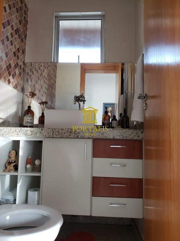 Banheiro social, com bancada em granito, armário e box,