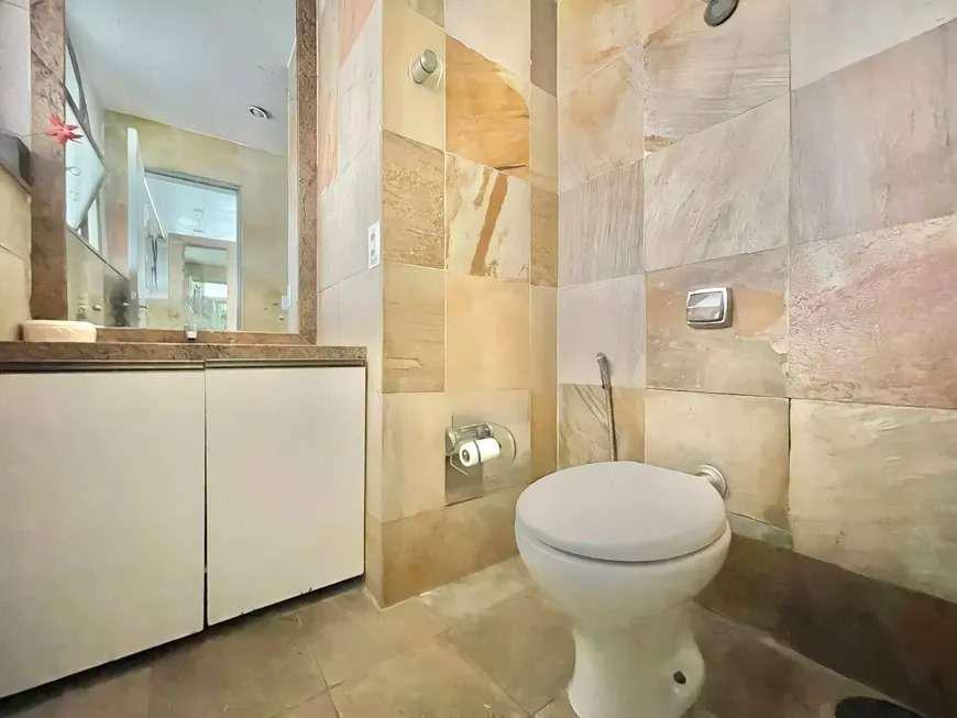 Banheiro Social: Banheiro com piso em porcelanato, proporcionando um acabamento sofisticado e funcional.