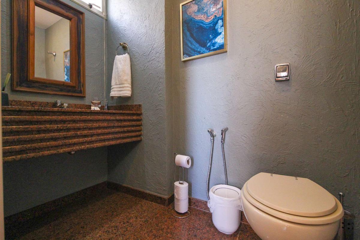 Sala Ampla para Dois Ambientes: Espaçosa e iluminada, com piso em tábua corrida. Inclui um lavabo para maior comodidade.