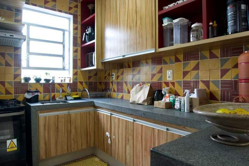 Cozinha com bancada e piso em granito e armários planejados