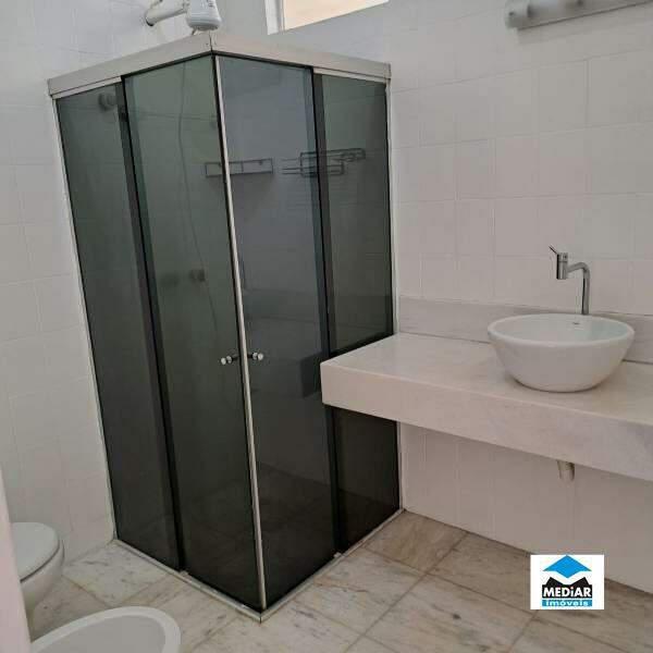 1 Banheiro social com armários planejados, espelho e box em blindex